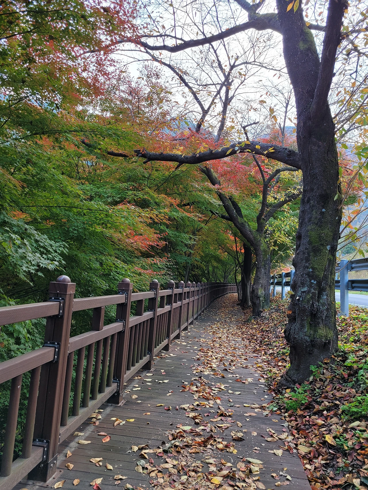 이 길에 펼쳐져 있는 단풍나무 잎의 색깔은 몇 가지나 될까?