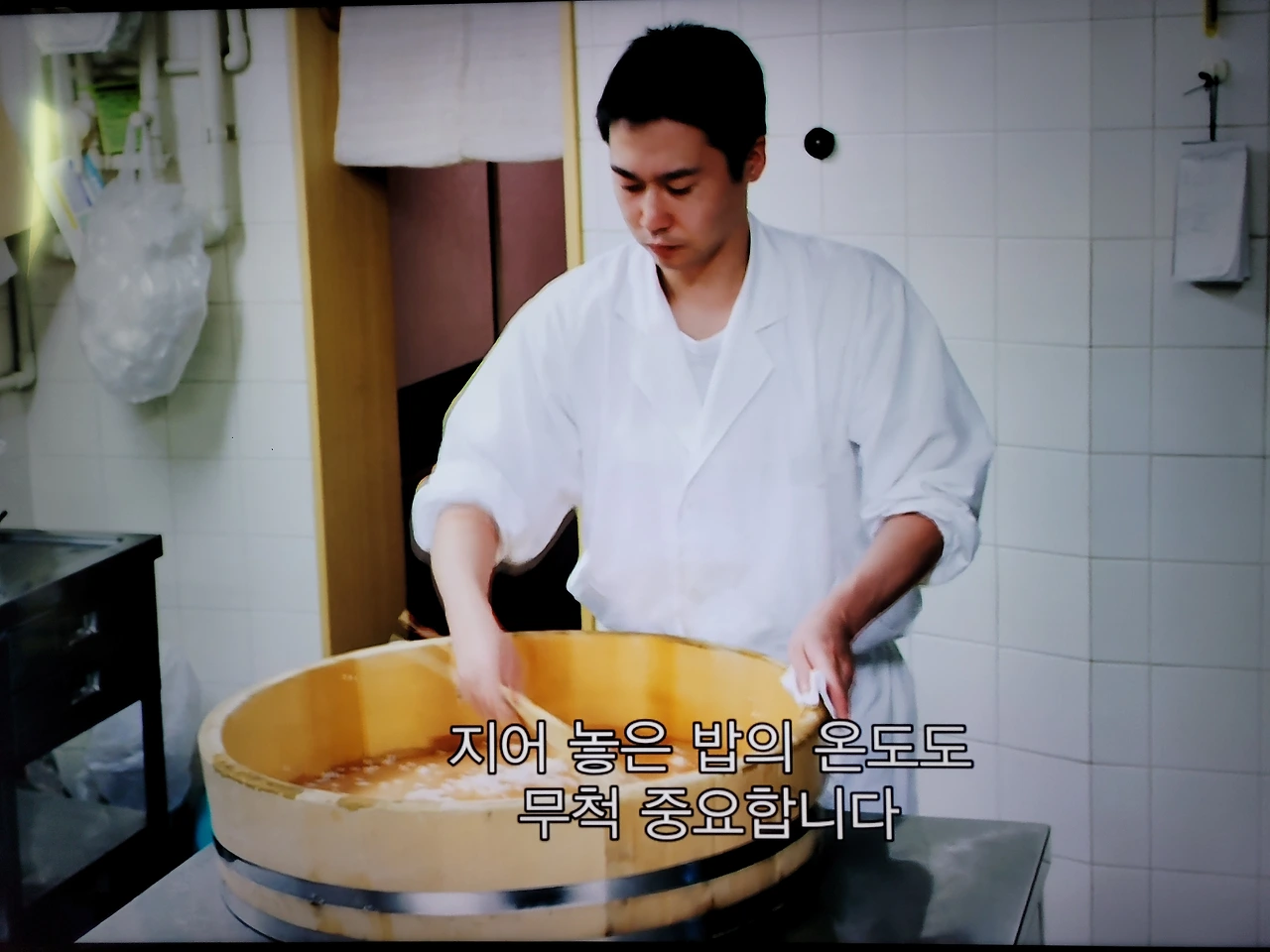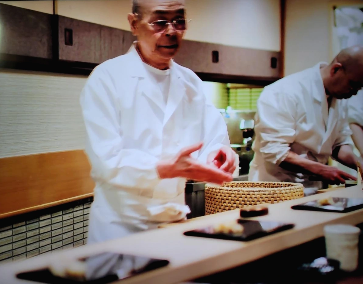 "초밥은 차갑다고 생각할지 모르지만, 차갑지 않습니다. 체온과 같은 온도가 가장 좋습니다. 그래서 식지 않을 방법도 연구하고 적당한 때를 맞춥니다. 적당한 때를 통달하는 것은 오랜 경험을 바탕으로 직감을 발전시켜야 아는 거죠. 결국 내 손이 초밥을 알아차려야 된다는 말입니다. 초밥은 완성되자마자 먹어야 가장 맛있습니다. 그래서 손님이 드실 그때 초밥을 만드는 것입니다."