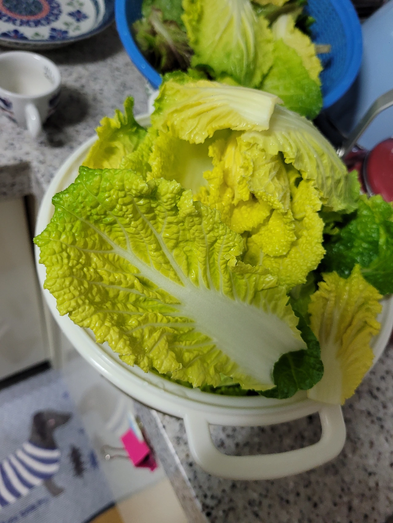 배추 노견병이 들었답니다. | 아기배추가 무럭무럭 자라 청년 배추가 된 지 엊그제 같은데, 배추는 하나씩 속을 채울 생각을 하고 있다. 이제 "나란히 나란히" 올라가던 배추들은 두 팔 벌린 푸르