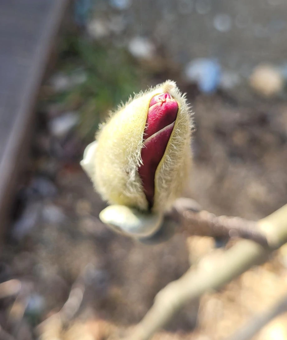뒷마당의 붉은 목련은 추운 겨울에 꽃몽우리를 맺혔다. 겨우내 잉태된 몽우리는 서서히 자라 이월에 꽃몽우리를 보이더니 조용히 성숙해져 왔다. 아침마다 새 모이를 주면서 지켜본다. 삼월이 돼서야 조금씩 벌어지기 시작하더니 제법 붉어진 속살을 살짝 내밀었다. 지난겨울의 추위와 고통이 없었다면 잉태되지 않았을 아이들이다. 사월은 돼야 붉은 꽃을 터트릴 듯하다.