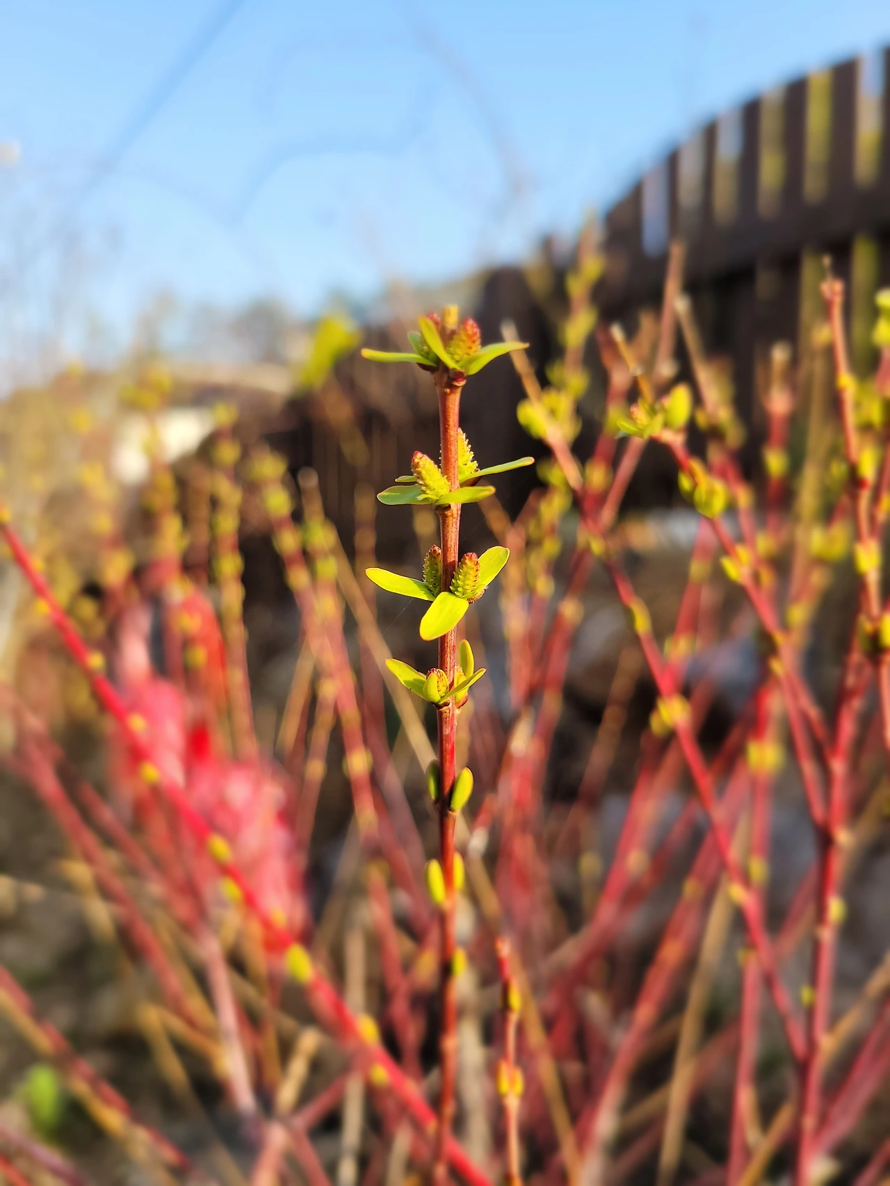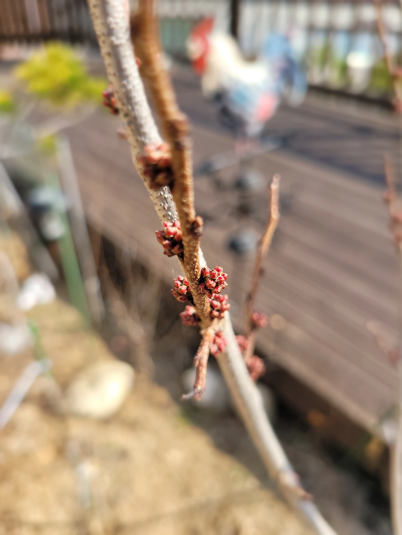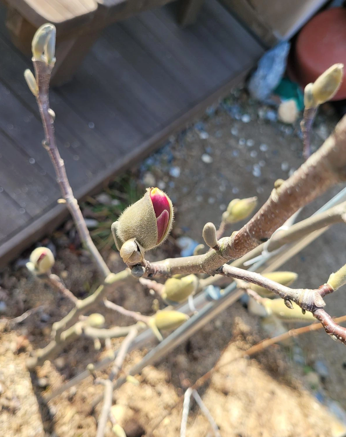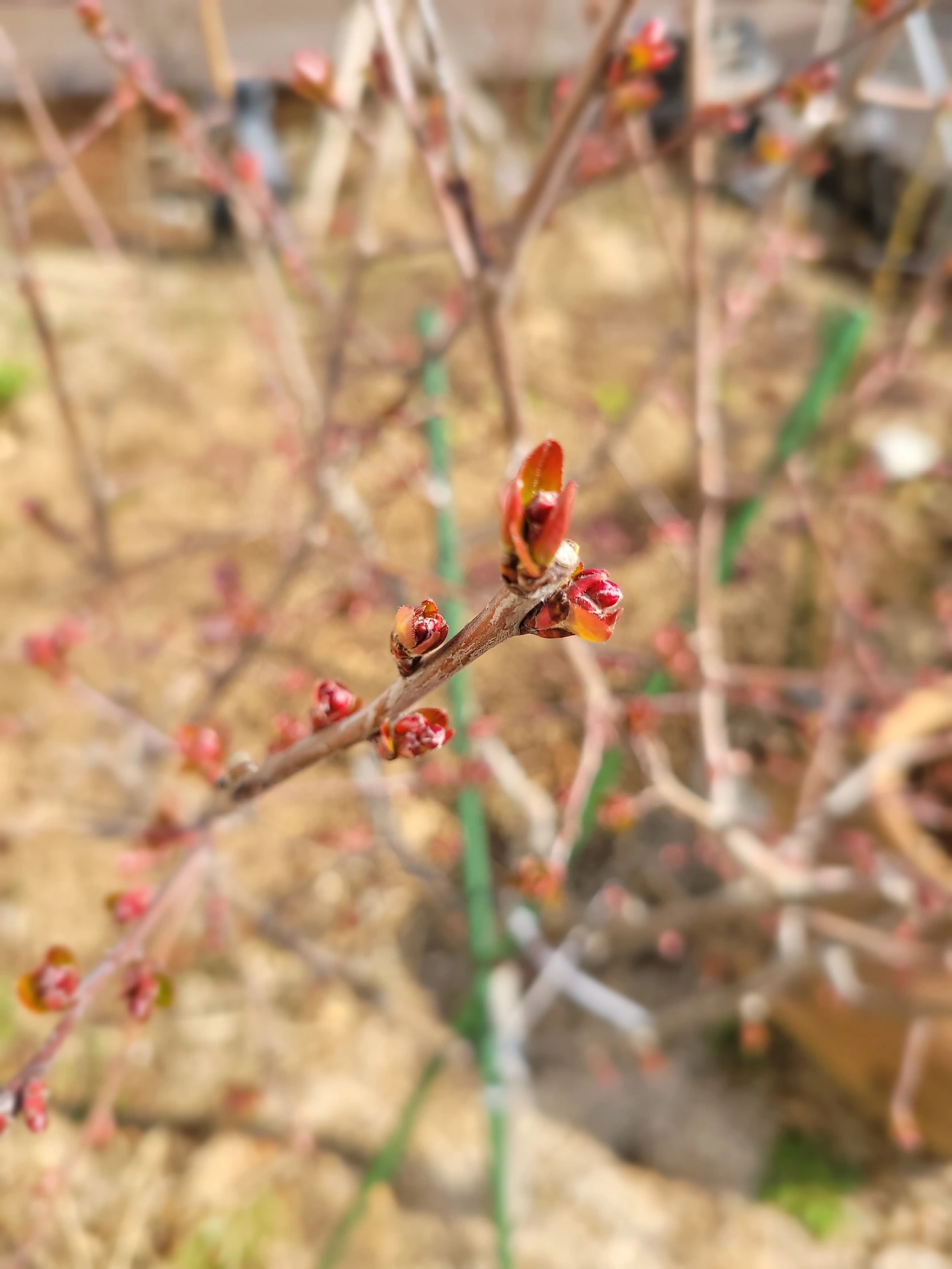 솜털로 둘러싸인 목련꽃몽우리의 개화를 기대하며 벌어지는 모습을 매일 관찰하다, 다른 나무들의 봄은 미처 보지 못했다. 서부해당화는 분홍 꽃망울을 품고 활짝 필 날들을 알리려는 듯 여린 잎이 가지마다 풍성하게 나와있다. 옆의 박태기나무 역시 가슴 아린 진분홍 꽃을 피워 낼 몽우리들이 줄기마다 맺혀있다. 밥알 모양의 작은 꽃이 다닥다닥 붙어있는 보랏빛의 박태기나무 꽃은 소박하면서도 화려하고 뭐라 표현할 수 없는 매력이 있다. 박태기는 경상도 말로 밥알을 뜻하는 "밥 티기"에서 유래되었다고 한다. 떨어진 밥알이라도 주워 먹고 싶었을 정도로 가난했던 시절, 학대받던 며느리가 죽은 후 생겨난 나무라는 얘기도 있다.