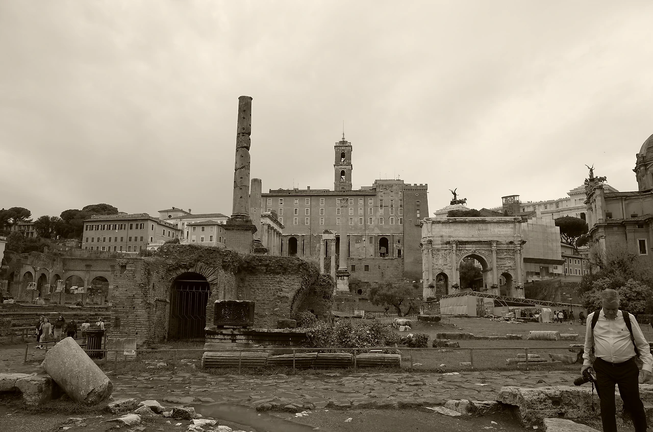 콜로세움을 떠나 포로 로마노(라틴어:Forum Romanum) 쪽으로 걸어간다. 걷다 보니, 비 오는 로마 길도 나쁘지 않다. 포룸 로마노 지역은 당시 로마의 행정기관이 모여있던 곳이다. 요즘으로 치면 세종시와 같다고나 할까. 관공서와 공공건물들이 즐비했던 곳이지만, 오늘 방문한 사람들은 그들의 흔적만을 볼뿐이다.