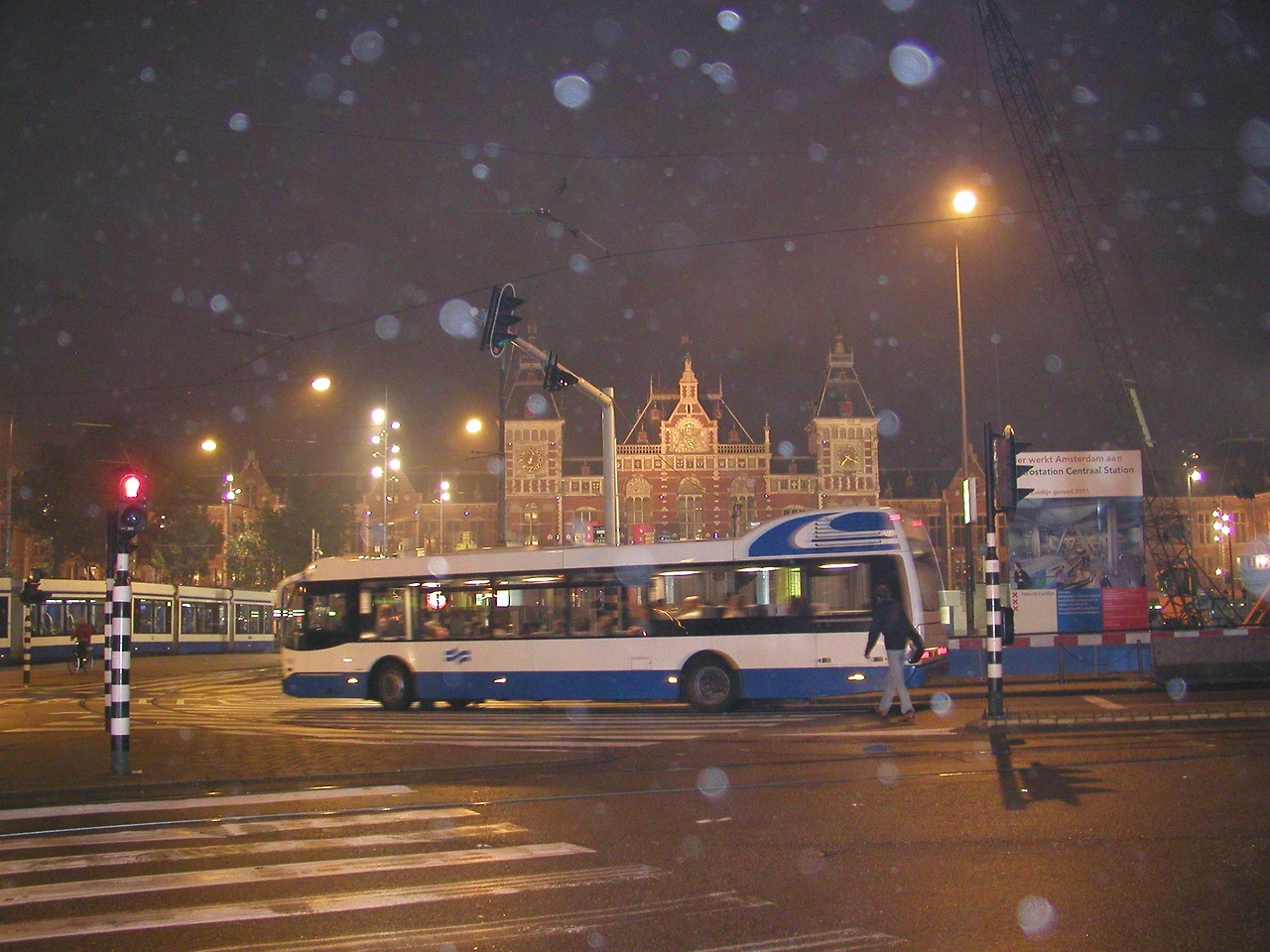 밤에 본 암스테르담 중앙역 / 아침 모습