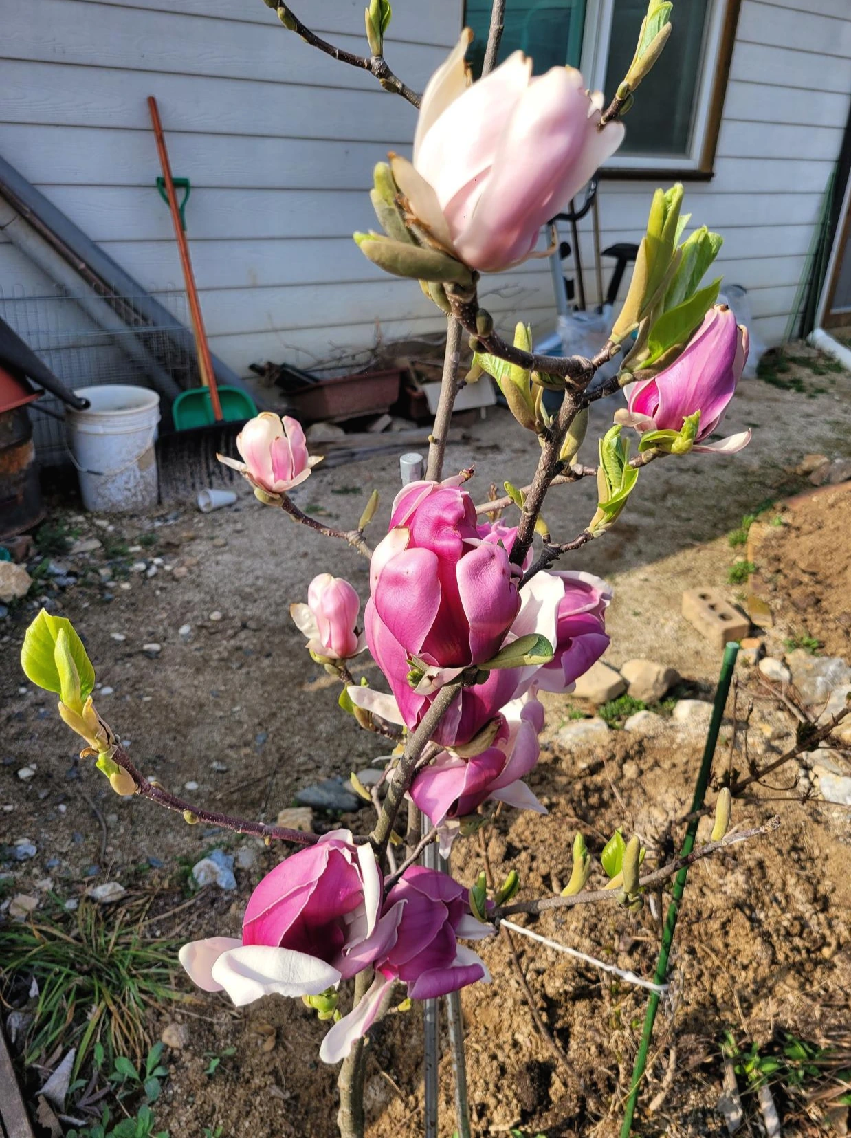 뒷마당 쪽의 자목련, 제 몸뚱이보다 더 큰 꽃몽우리를 아홉 개나 품고 있다가 새에게 뜯기기도 하고 지난 주말에 핀 건지 터진 건지(사실 얘들의 모양을 보면 피었다는 표현보단 터져버렸다는 말이 맞다), 커다란 꽃잎들이 처절하게 흐트러져 있지만, 연둣빛 잎들이 지고 난 꽃 위로 올라와 위로로 덮는다. 꽃이 지고 잎이 나, 새로운 목련나무를 키워간다. 힘들게 피었지만, 태어남과 떨어짐과 또다시 이어짐이야 말로, 삶의 성장을 위해서는 어느 것도 염려할 필요 없다는 자연의 가르침을 온몸으로 보여주는 것 아닐까 싶다.