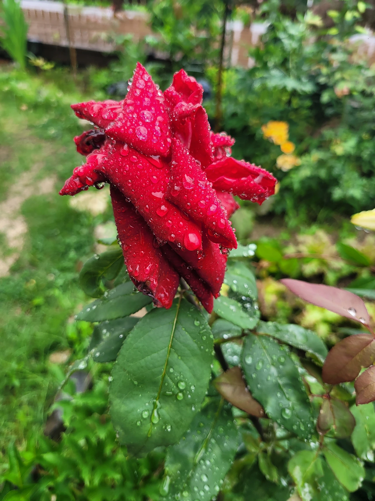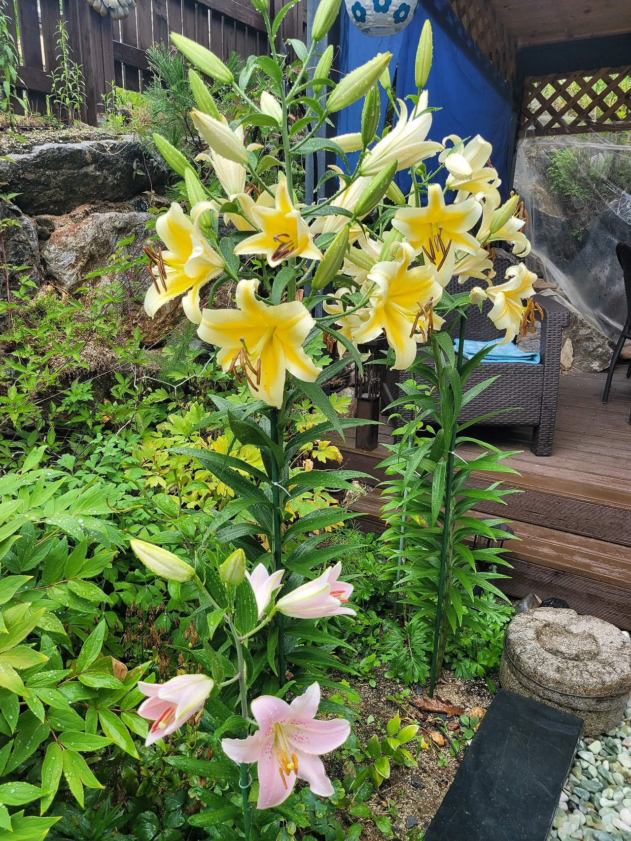마당 한 켠의 백합과 초록 풀로 둘러진 야채들이나 간밤 내린 비로 함박 젖어도 즐거운 장미와 수국도 같이 말하고 있습니다.