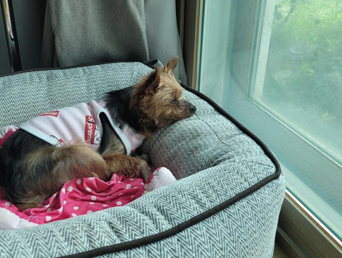 샐리가 6개월 때 홀로 외로울까 봐 (샐리 입장에선 전혀 아닐 수도 있었지만...) 보리를 입양했습니다. 보리 역시 발랄한 요크셔테리어라 두 녀석은 아주 신나게 잘 어울리며 놀았지요. 어느 날 저녁에 소파에서 오르락내리락하던 잘 놀고 있었는데 갑자기 악소리가 나서 보니, 보리가 오른발을 들고 있었습니다. 놀라 심야병원에 데려가니 무릎 아래 뼈가 부러졌다고 해 수술을 했습니다. 성장점은 피했다고 자라는 데는 문제없을 것이라고 했지만 수술 후 엑스레이를 확인해보니, 수술한 곳이 약간 비뚤어져 재 수술까지 했습니다. 철심을 박았는데, 빼지 않아도 된다고 해서 아직까지 철심이 박혀있는 상태입니다. 보리도 나이가 들다 보니 철심 주위가 불편한지 오른쪽 다리가 왼쪽 다리 같지 않아 수의사님 말만 듣고 철심 제거를 하지 않은 것이 후회됩니다. 수술 후 가료 중에 조심해야 한다고 해, 워낙 활발하고 나대기를 좋아하는 샐리를 동생집에 보내게 되었습니다.