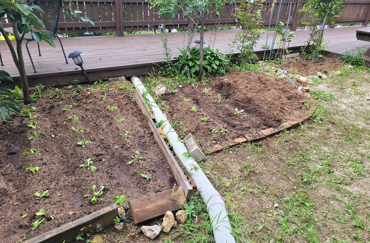 골을 파가며 어린 모종, 정성껏 자리잡이 준다.