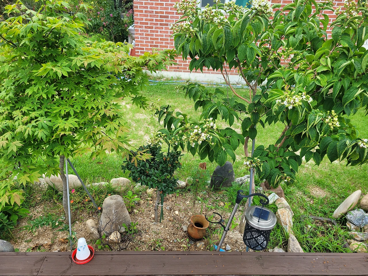 흐린 휴일에 이렇게 자유를 누리고 있다. 머릿속의 여전히 많은 욕심과 꿈과 번창하는 계획을 내려놓고 무조건 쉬어야 하는 훈련 인지도 모른다. 마당에는 막 분홍 꽃잎을 올리려는 칠지화와 붉게 물들어 갈 단풍나무도 있지만, 내년 봄에 피울 꽃을 위해 벌써부터 꽃대를 올리는 산딸나무도 있다. 옆에는 사시사철 푸르른 청춘의 꿈을 보이는 겸손한 소나무가 있다. 작은 마당에는 지금의 절정과 내년 봄의 아름다움, 그리고 언제나 푸름과 희망을 상징하는 나무들이 조용하게 공존하고 있다.