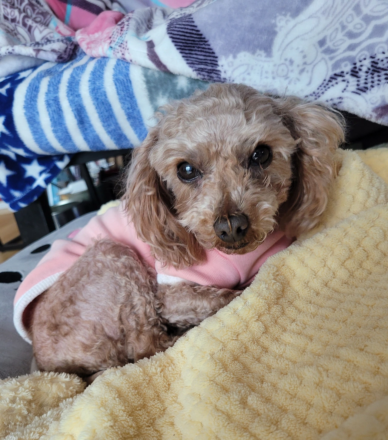 한겨울 추운 날씨에 매끈하게 밀어버려 미안했지만, 실내복을 입혀 춥지 않게 해 준다.