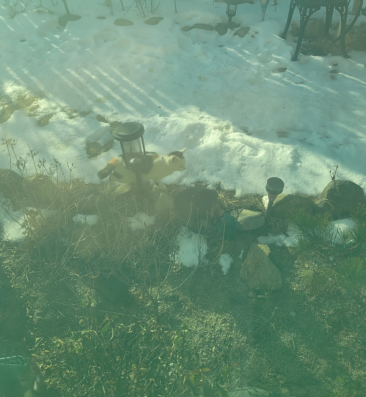 정원을 헤집고 다니는 삼색이 / 마당을 바라보며 짖어대고 감시하는 강아지들