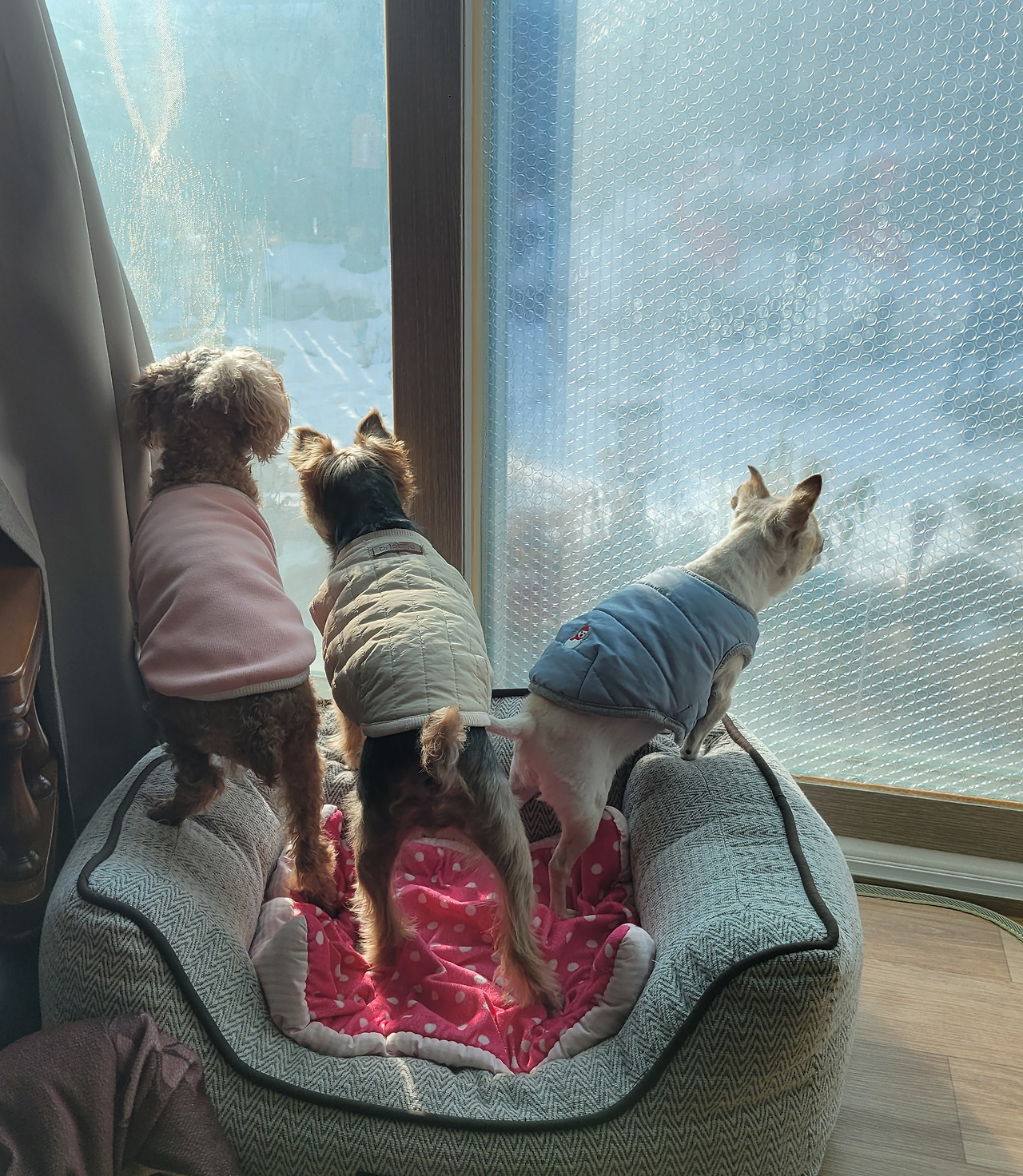 강아지 세 녀석이 받을 스트레스도 은근히 염려된다.