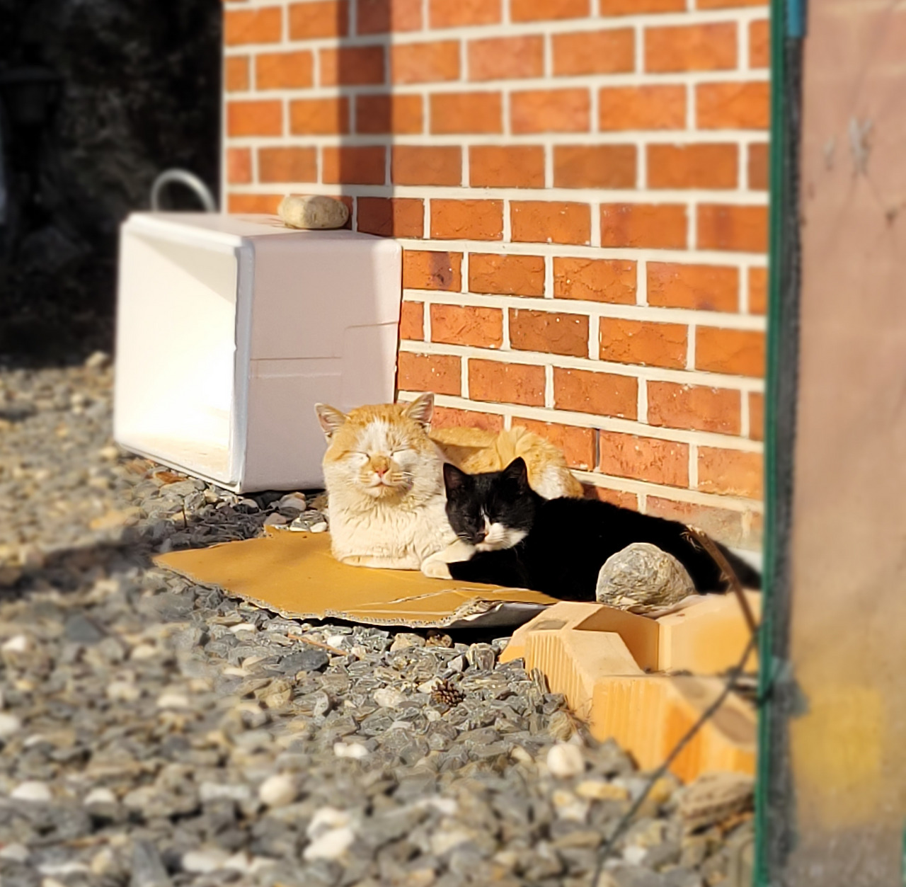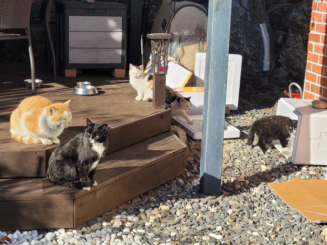 작년겨울 길냥이 가족들이 따뜻한 한 때를 즐기고 있다