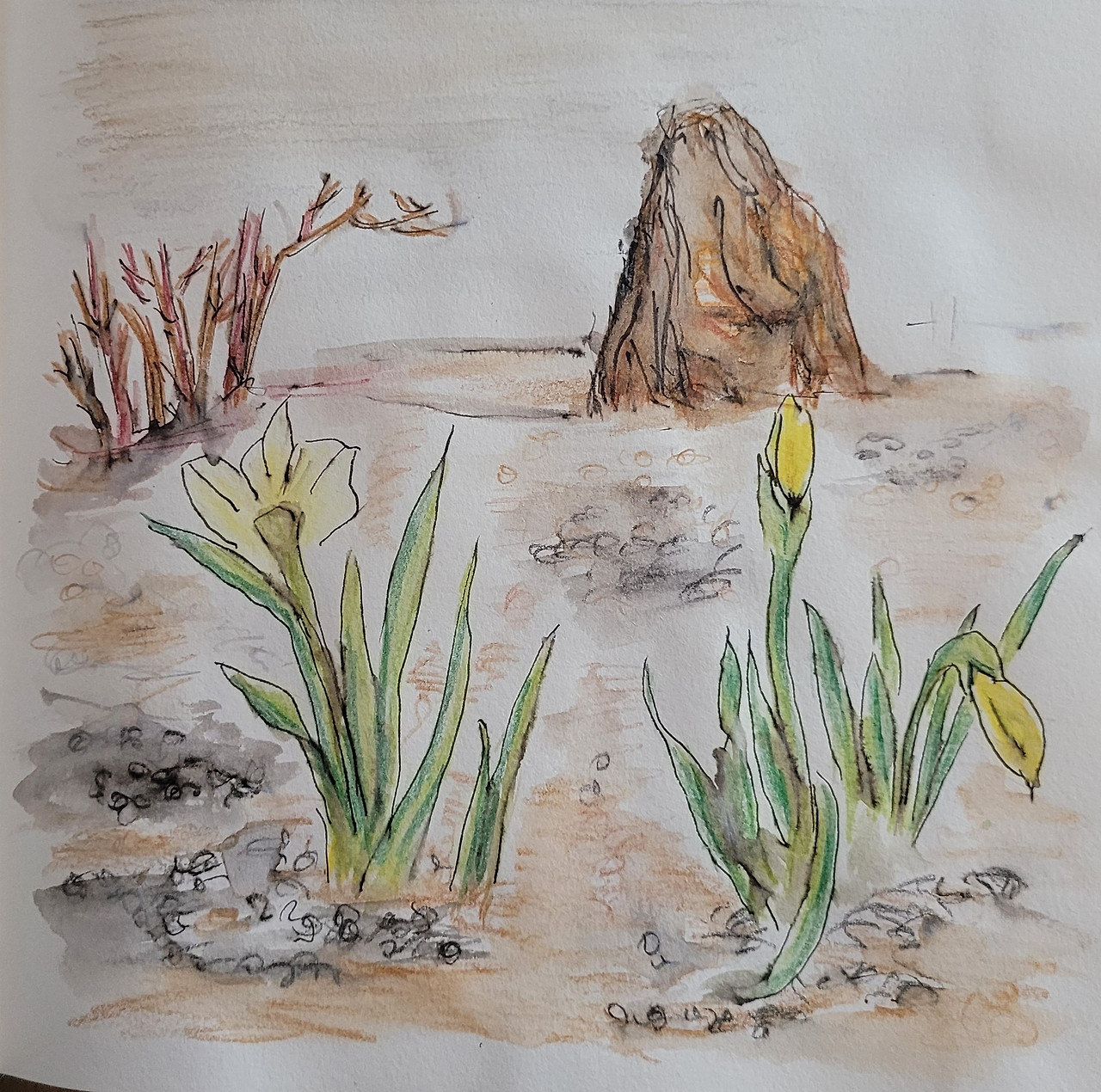 어제 수선화가 처음으로 피었는데... 수줍어 고개도 제대로 들지 못한 아이인데...
