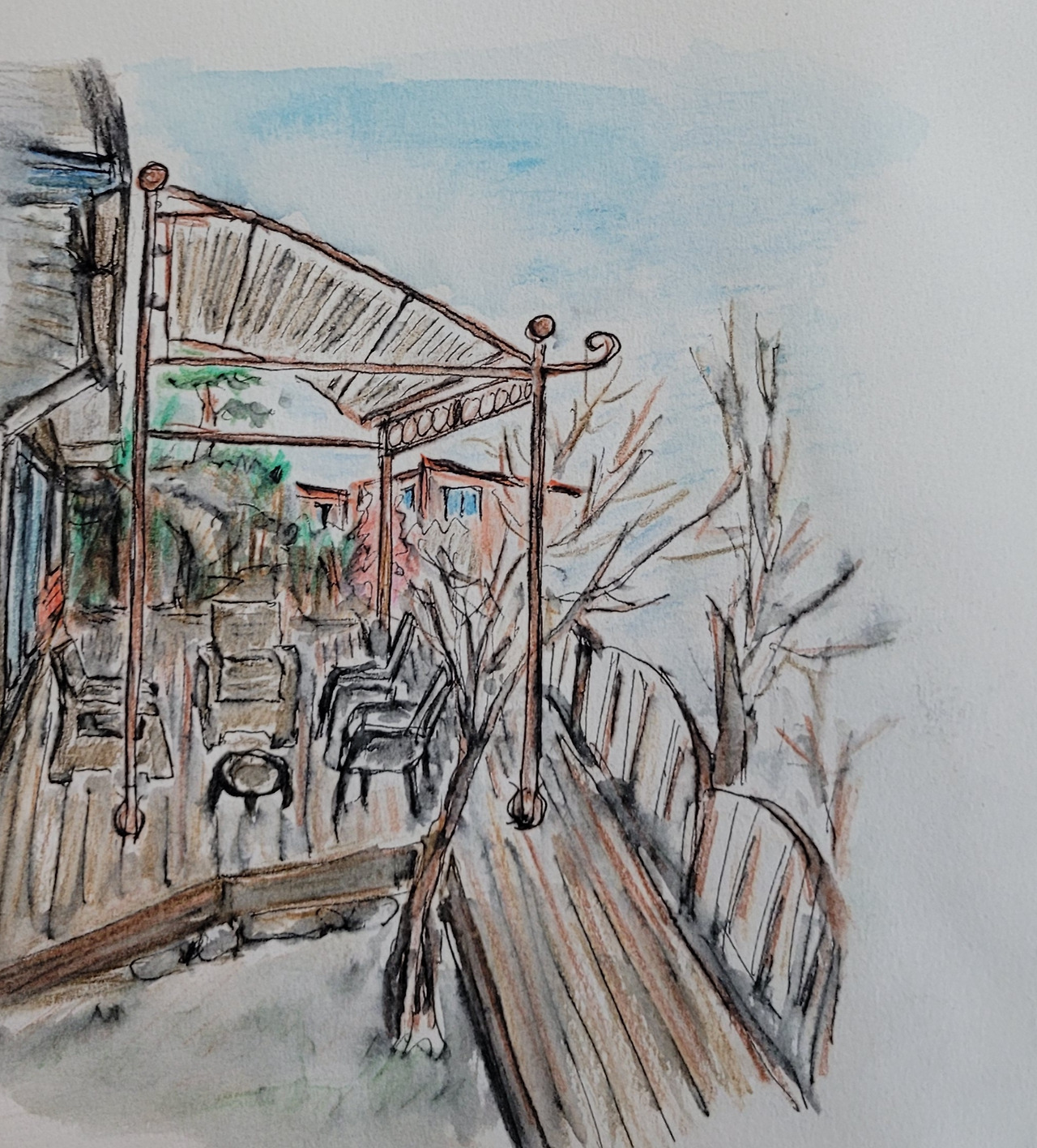 전 주에 새로 설치한 차양막이 아주 예쁘다.