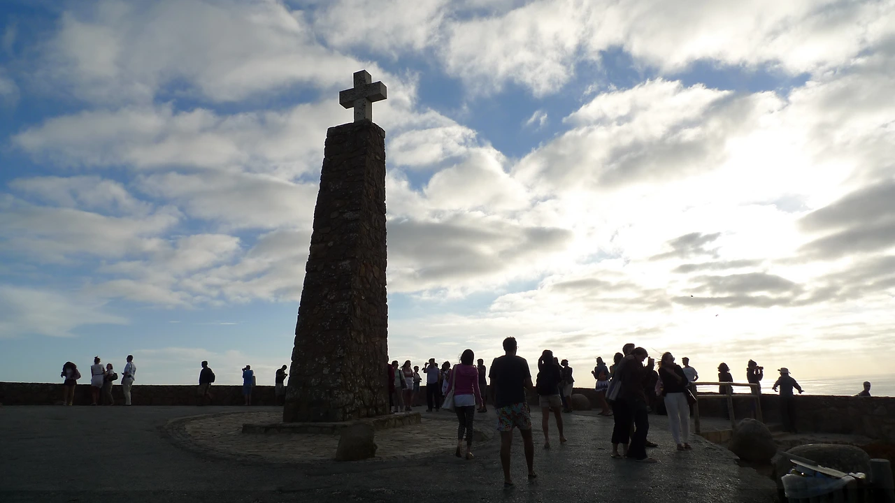 까보 다 호카 십자가 탑을 바라보며 기념사진 찍는 사람들