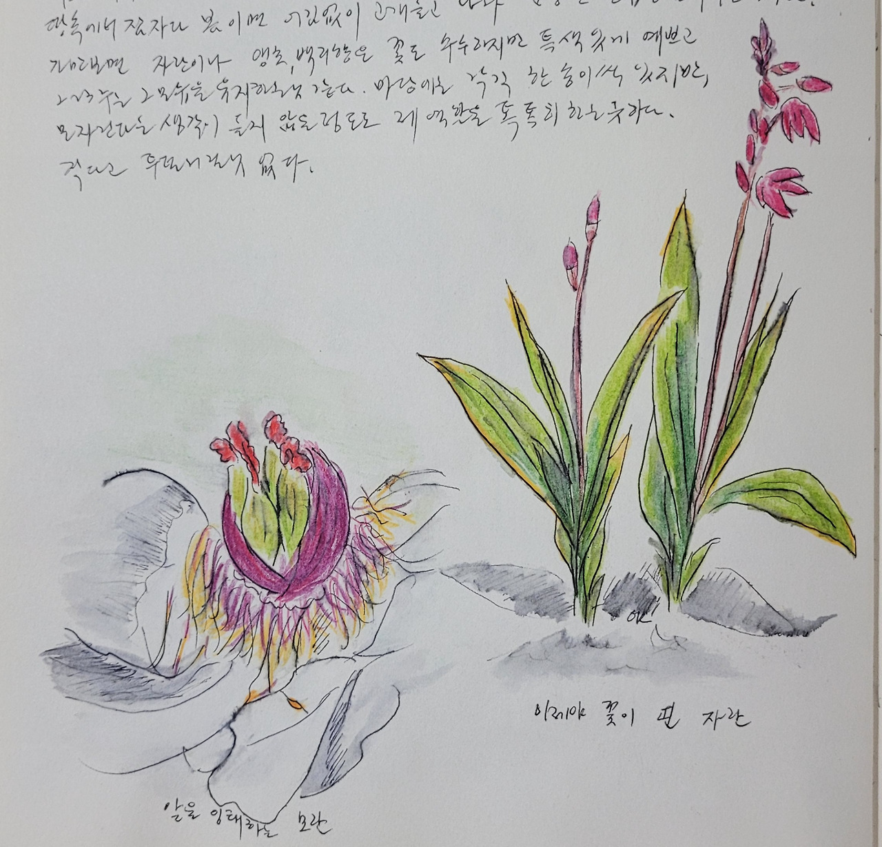 자란은 꽃대를 올린 지 2주가 지나 이제 한 두 송이가 피었다. 붉고 똘똘한 꽃대를 느긋이 세우고 견디더니 오늘 두 송이가 핀 것이다.