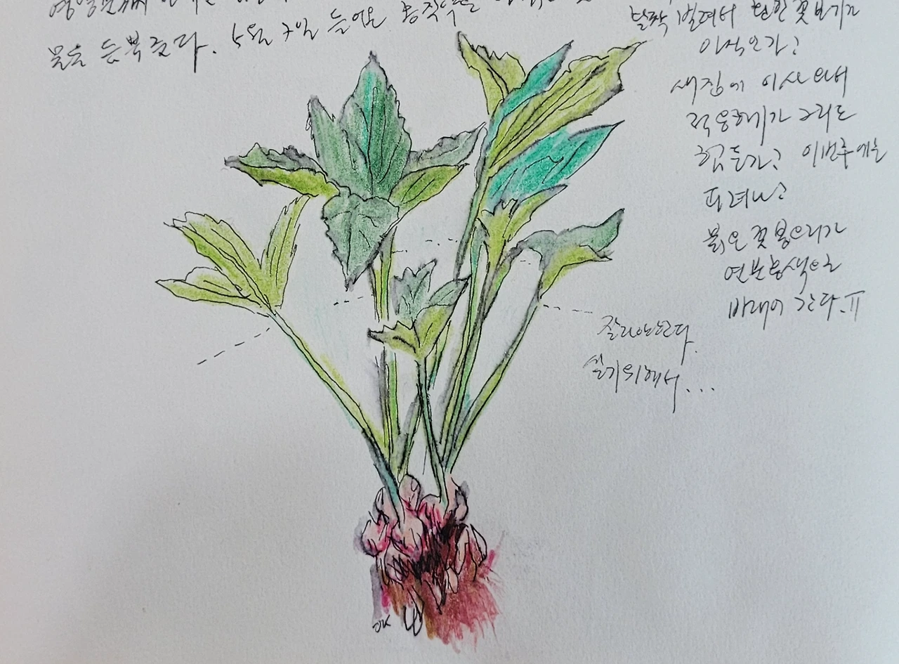 새로 심은 아이들은 커다란 잎을 자르고 남은 줄기와 뿌리를 심어주면 된다. 큰 잎에 영양분까지 보내긴 힘들다. 뿌리가 활착해야 하니 잘 심어주고 물을 듬뿍 준다.