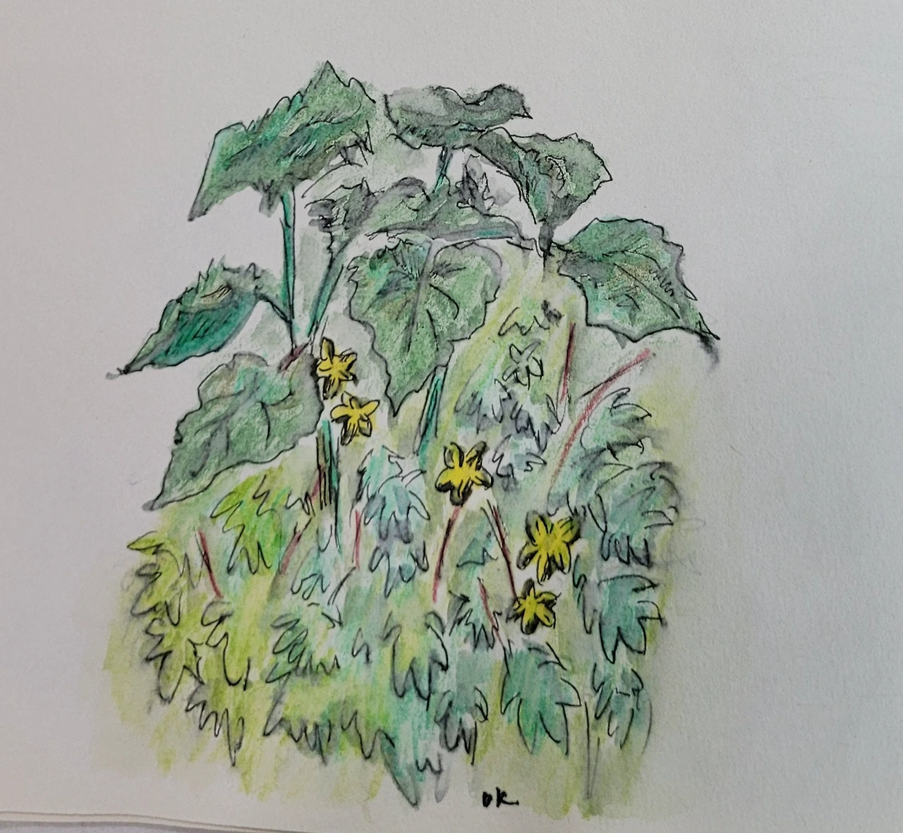오동나무뿌리까지 뽑아버리려 노력해 봤으나 큰 돌사이에 워낙 깊이 박혀 포기하고 잎은 계속 잘라 주었다. 올해도 커다란 오동나무 잎은 곧 잘라야 할 것 같다.