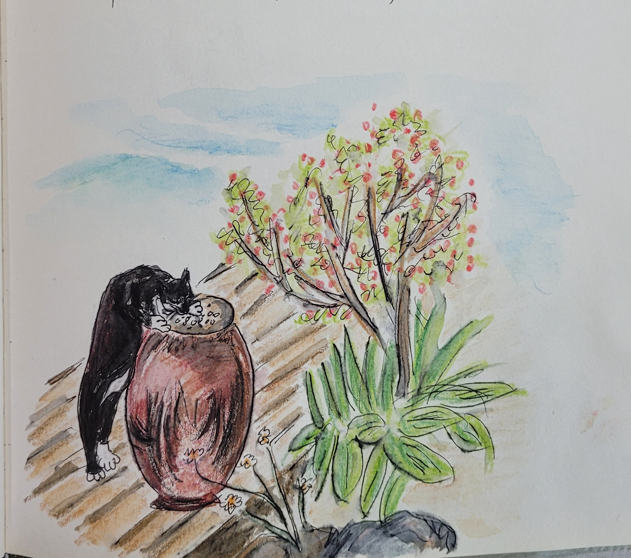 이른 아침 윗동네로 3바퀴 산책, 언덕이 많아 운동하기엔 적당하다. 산책 후 마당에 물을 주며 시든 장미 잘라내고 풀도 한 줌 뽑았다.