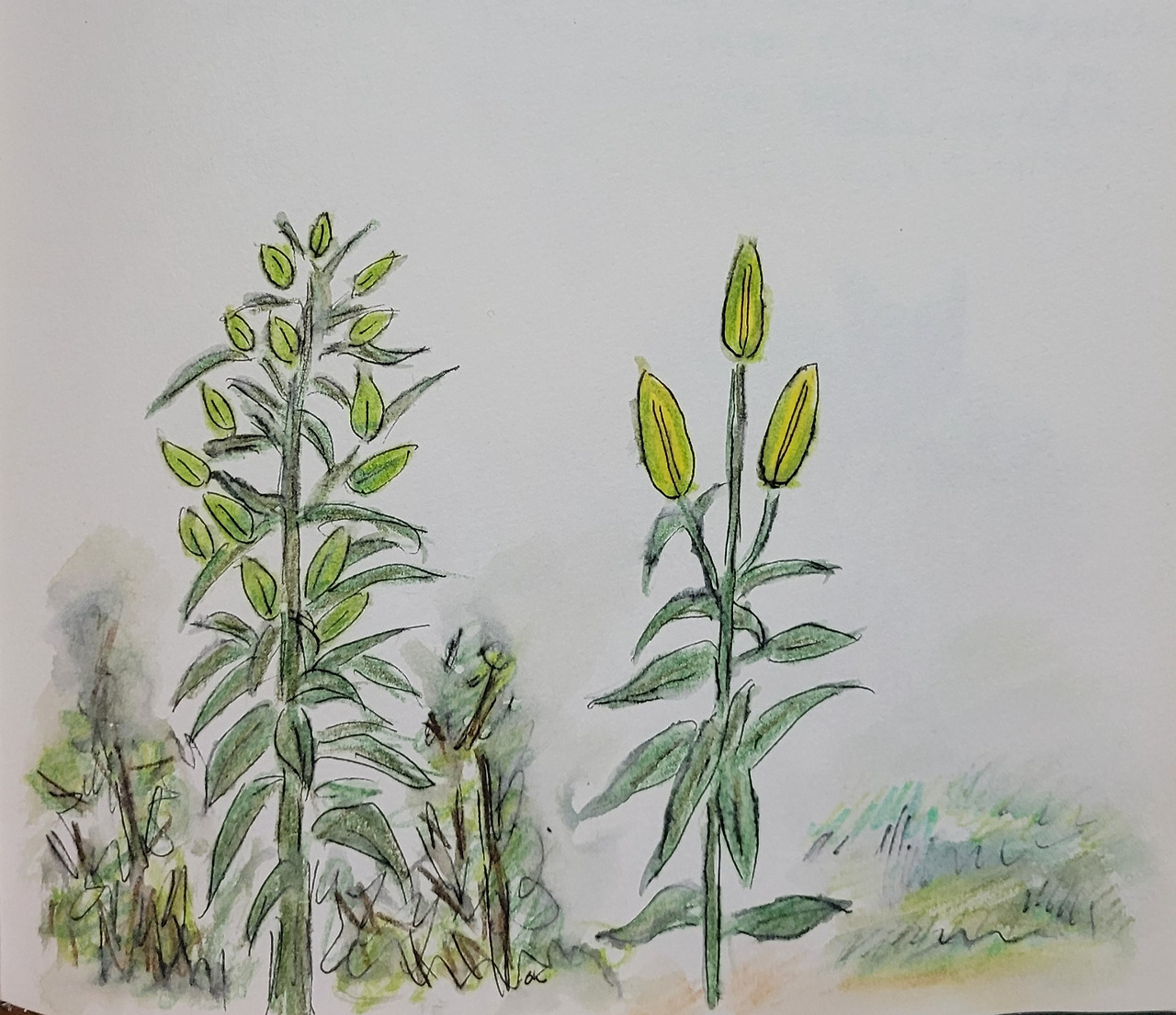 백합이 피기 시작하는데 큰 아이들은 이제 기지개를 켠다. 서부 해당화를 짓누르고 크던 대백합(웬만한 마무 기둥 같은 몸태를 가지고 있다)은 꽃송이도 많이 맺히고 있다.
