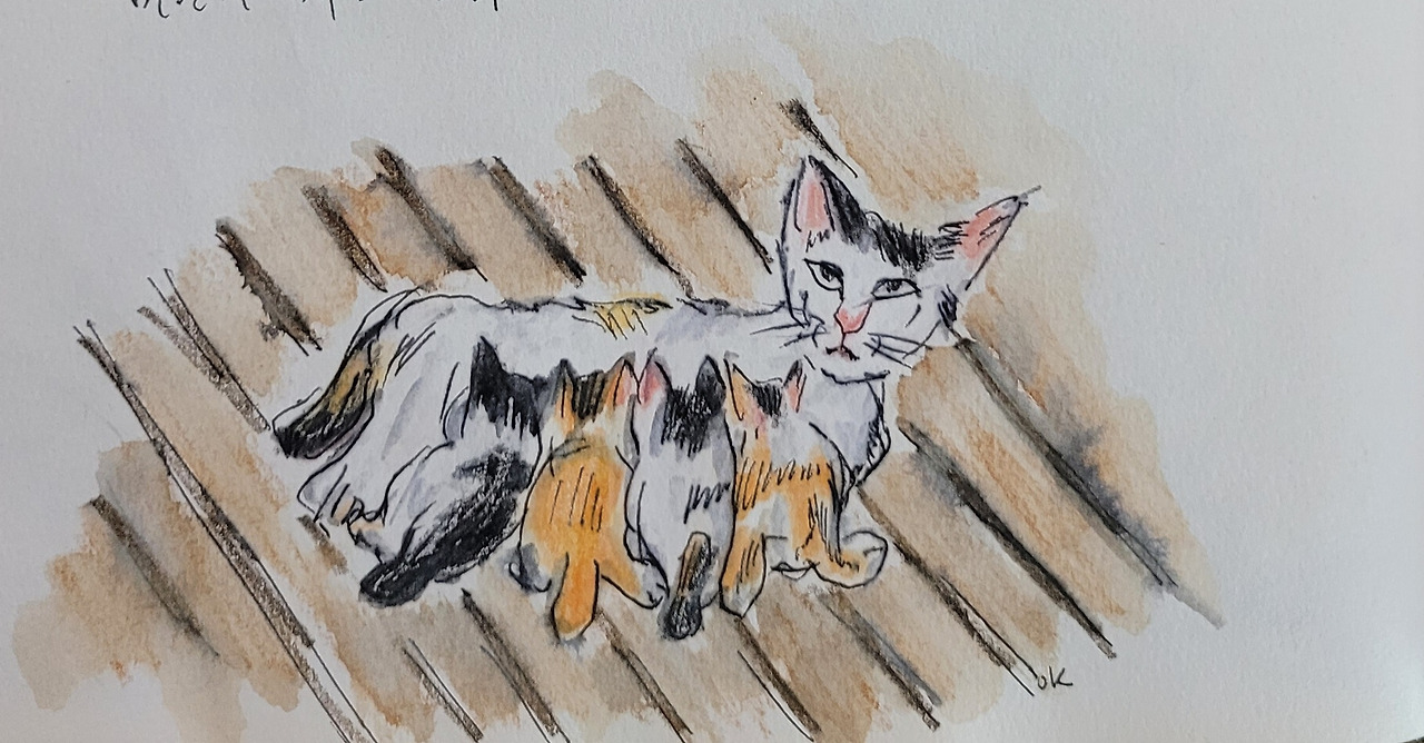 비는 하염없이 내리지만 삼색이 냥아기 들은 데크 위에서 장난치며 놀고 있다. 삼색이가 냥아기에게 젖물리다 눈이 마주쳤는데 뭐라고 말하는 듯하다. 장마 기간에도 저들 편히 쉴 곳과 먹을 것을 제공해 주는 것에 대해 고맙다고 하는 건가? 듣고 싶은 내 생각대로 삼색이는 말하고 있는 것인가? 그러고 보니 삼색이가 새끼 4마리 를 데리고 들어온 때부터 깜냥이와 콧선생은 잘 오지 않고 있었다.