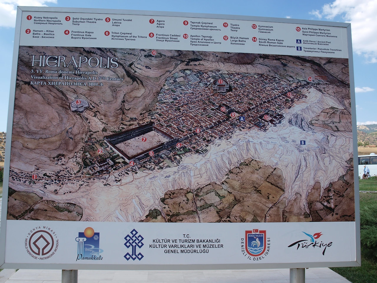 히에라폴리스 온천 수영장과 히에라폴리스 지도