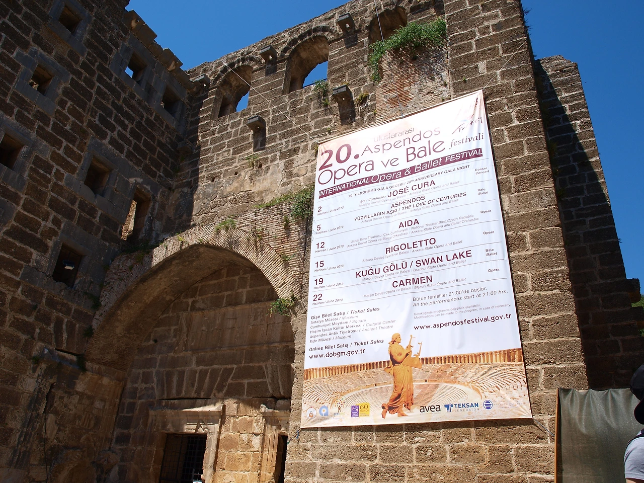 아스펜도스 원형경기장에 들른다. 아스펜도스 (Asependos archaeological site)는 로마시대 원형경기장이 가장 잘 보존된 곳의 하나라고 한다. 그리고 주변으로 폐허가 된 고대 건축물의 잔재들이 널브러져 있다. 얼마나 화려한 과거를 지녔는지 몰라도 폐허가 된 흔적 속에서 인생사의 허무함도 보지만, 역사가 살아 움직이는 증거도 본다. 아스펜도스는 지중해와 16km 떨어진 산언덕에 있지만, 로마시대에서는 아스펜도스 옆에 있는 유리 메도 강으로 배가 올라올 수 있었다고 한다.