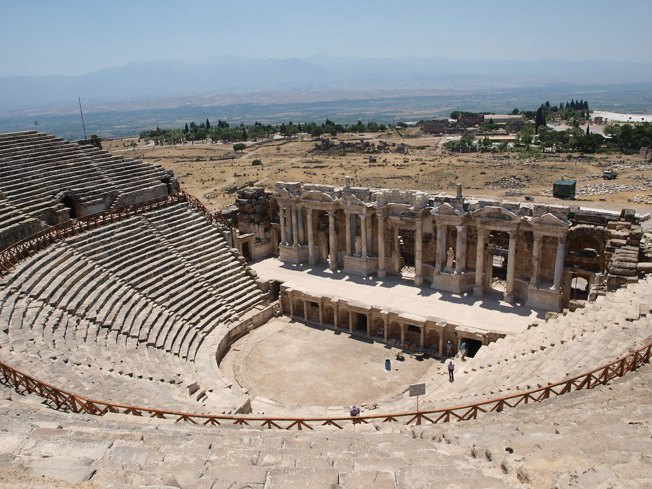 온천이 발달해 로마의 유력인사들이 은퇴 후 많이 거주하던 풍요로운 곳이었지만, 공동묘지가 많아 "죽은 자 들의 도시"라고도 불렸다 한다. 젊어서 세계를 누비던 로마인들이 늙어 편히 쉬며 마지막 자신들이 들어갈 자리까지 이곳에 만들었다고 하니, 여러 애환이 서린 도시기도 했겠다. 지진 등으로 파괴되어 흔적만 많이 남아 있다. 토라 산맥을 끼고 쏙 들어앉은 그러면서도 아주 멀리까지 관측이 가능한, 뜨거운 햇살 아래의 원형경기장은 비교적 잘 보존되어 있는 것 같았다. 온천욕장과 파묵칼레 중간에 있는 히에라폴리스 박물관에 들러 관람한다. 도시가 상당히 컸고 발전했던 흔적을 볼 수 있었다.