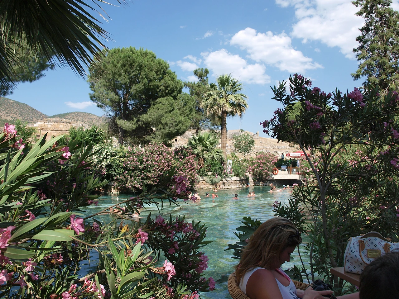 파묵칼레 위쪽 히에라 폴리스 쪽에 온천욕장이 있다. 고대 히에라폴리스의 온천욕장 그대로다. 물속에 돌기둥과 파손된 대리석조 각상들이 그대로 가라앉아 있다. 클레오파트라가 온천한 이야기가 전해져 내려올 정도로 오래된 곳이다. 자연을 훼손하지 않고, 덧붙이려고도 않고, 새것으로 교체하지도 않는다. 하루에도 수없이 뽑았다 옮겼다는 반복 하며, 맘에 안 들면 잘라 버리는 사람들도 있는데, 그냥 두고 보존하는 것을 보니, 개발을 하지 않는 게으른 면도 있을지 모르나, 두고 볼 줄 아는 여유가 있어 부럽다.