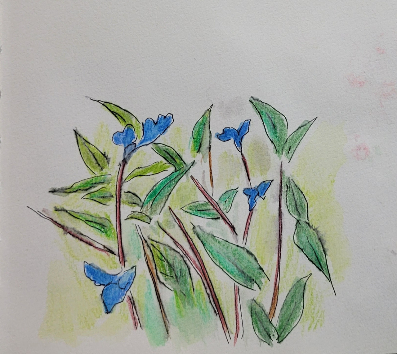 이름도 모르는 풀인데 마당 곳곳에서 볼 수 있는 흔한 풀이다. 파란 꽃을 예쁘게 피웠다.