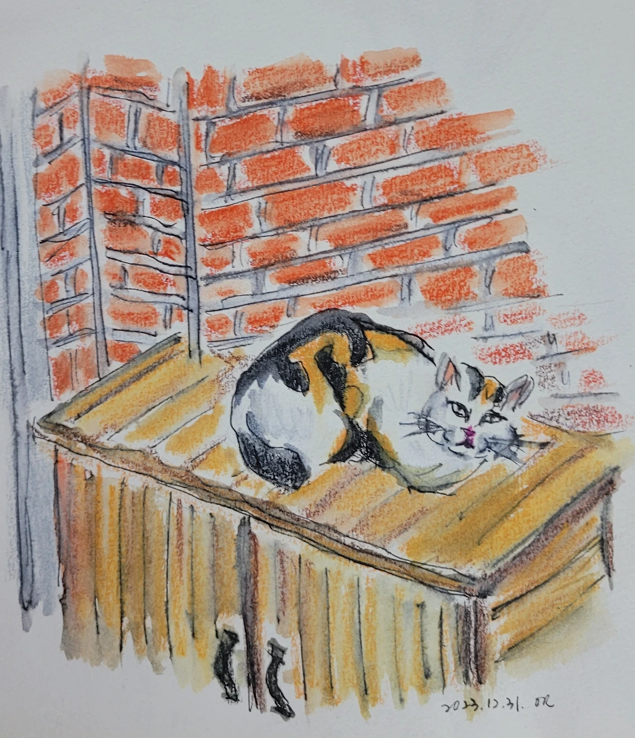 사람 들락거리는 대낮엔 굳이 나무장위에 엎드려 검문을 한다.