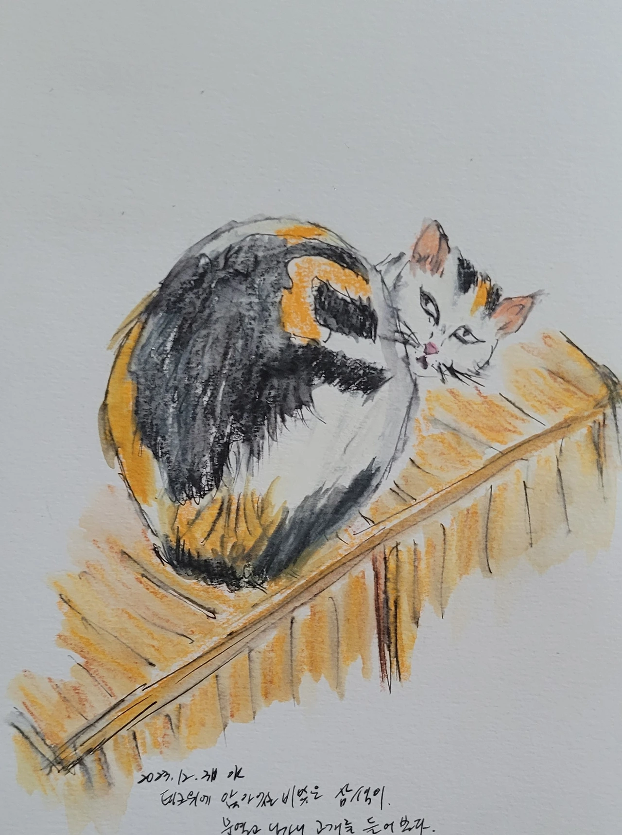 만사가 저하기 나름이라며 애교로 들어오는 길냥이 삼색이를...