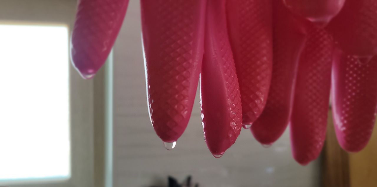 늘상 그렇듯 장갑에 묻은 물방울은 아래로 흐른다