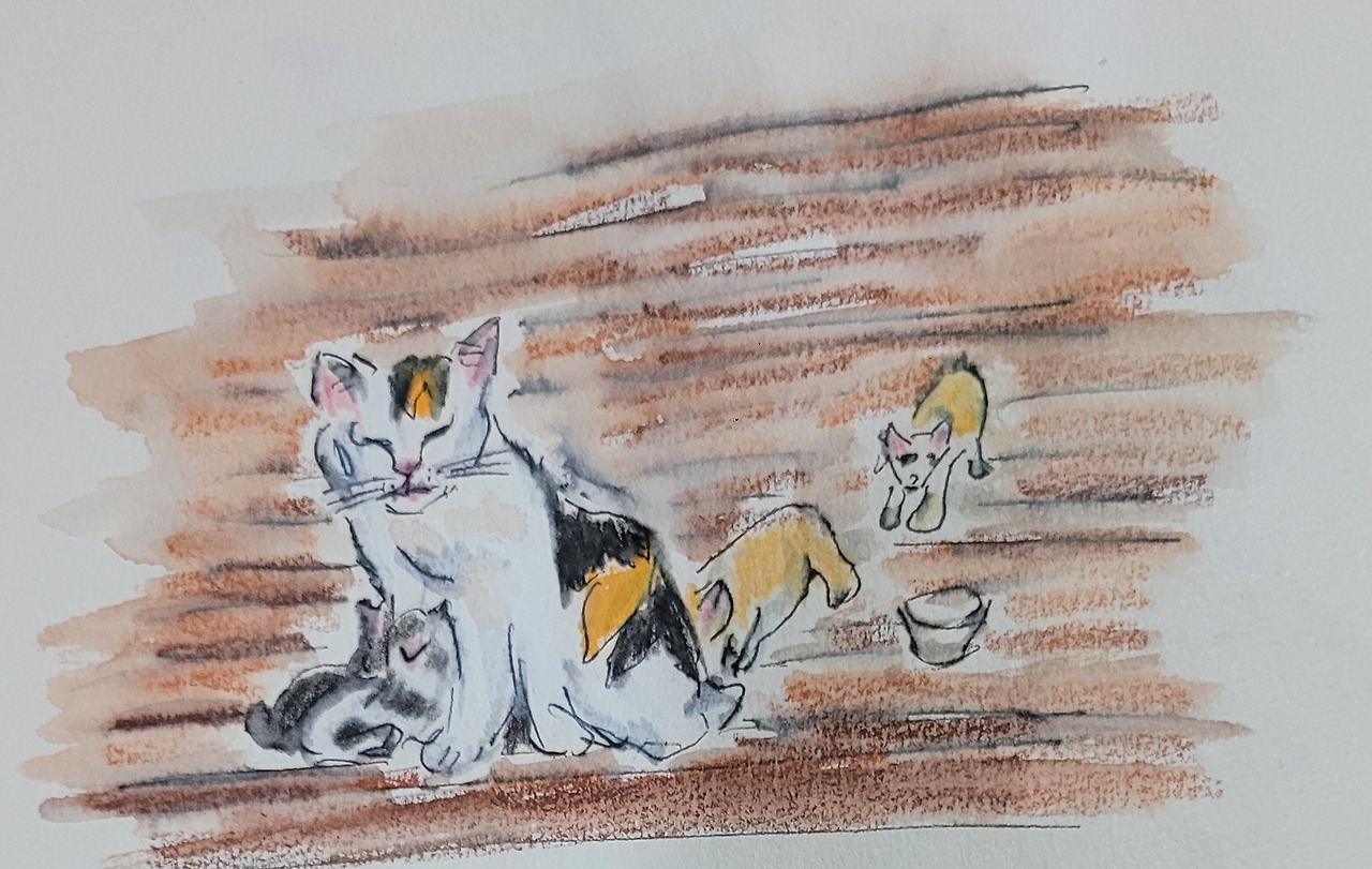 "삼색아! 너는 참 대단하다. 많이도 낳고 하나도 놓치지 않고 잘 키웠구나! "
