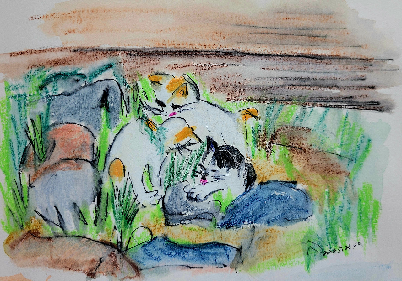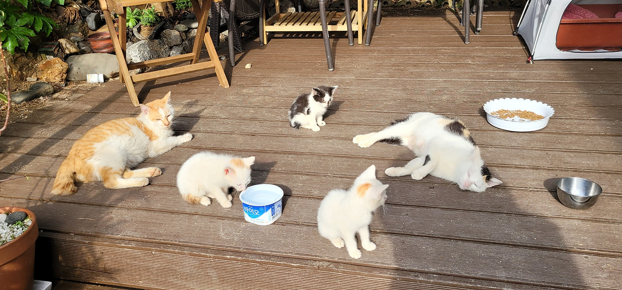 건강해지면 제 세상을 찾아 훌훌 날아다닐 것이다. 그때까지 정성껏 돌보자 생각한다. 혹 더 나빠져도 어쩔 수 없다. 타고난 명대로 살다 갈 것이라는 내려놓는 마음으로 우리는 위안받기로 했다. 티코와 자몽이는 뒷산 언덕에서 예쁜 고양이꽃으로 누워있고 작년에 태어났던 아이들도 어느 집에선가 밥 잘 먹으며 지내고 있을 것이다. 그렇게 날아오르는 정원 고양이 꽃들이다.