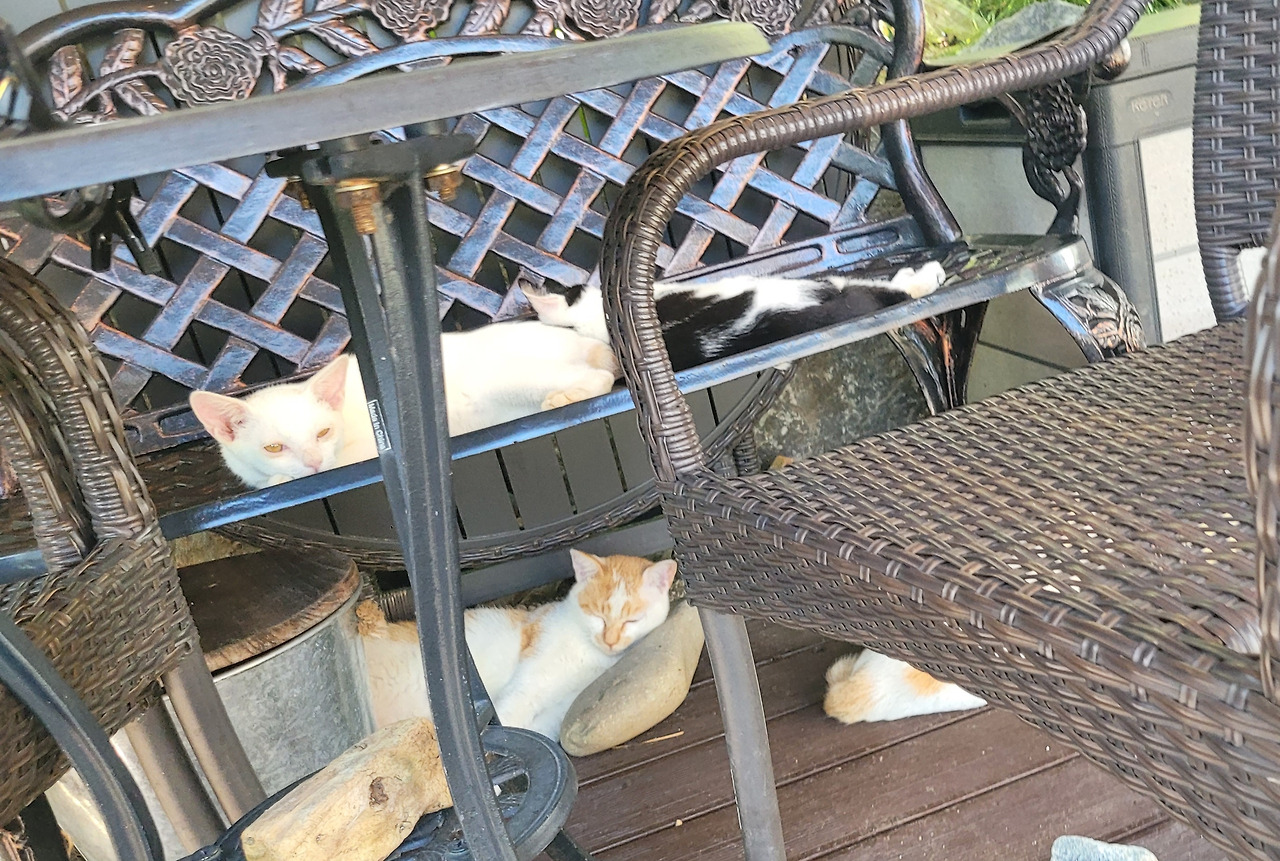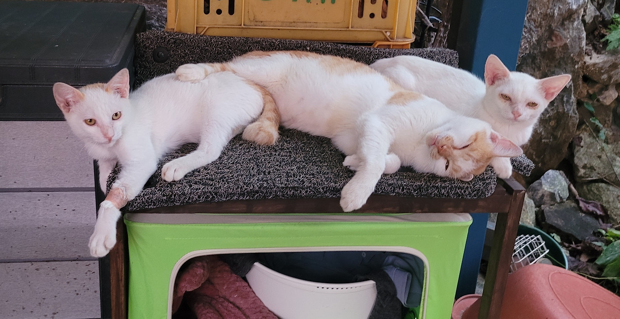 돌베개를 베고 낮잠을 즐기는 솜이와 삼냥이들