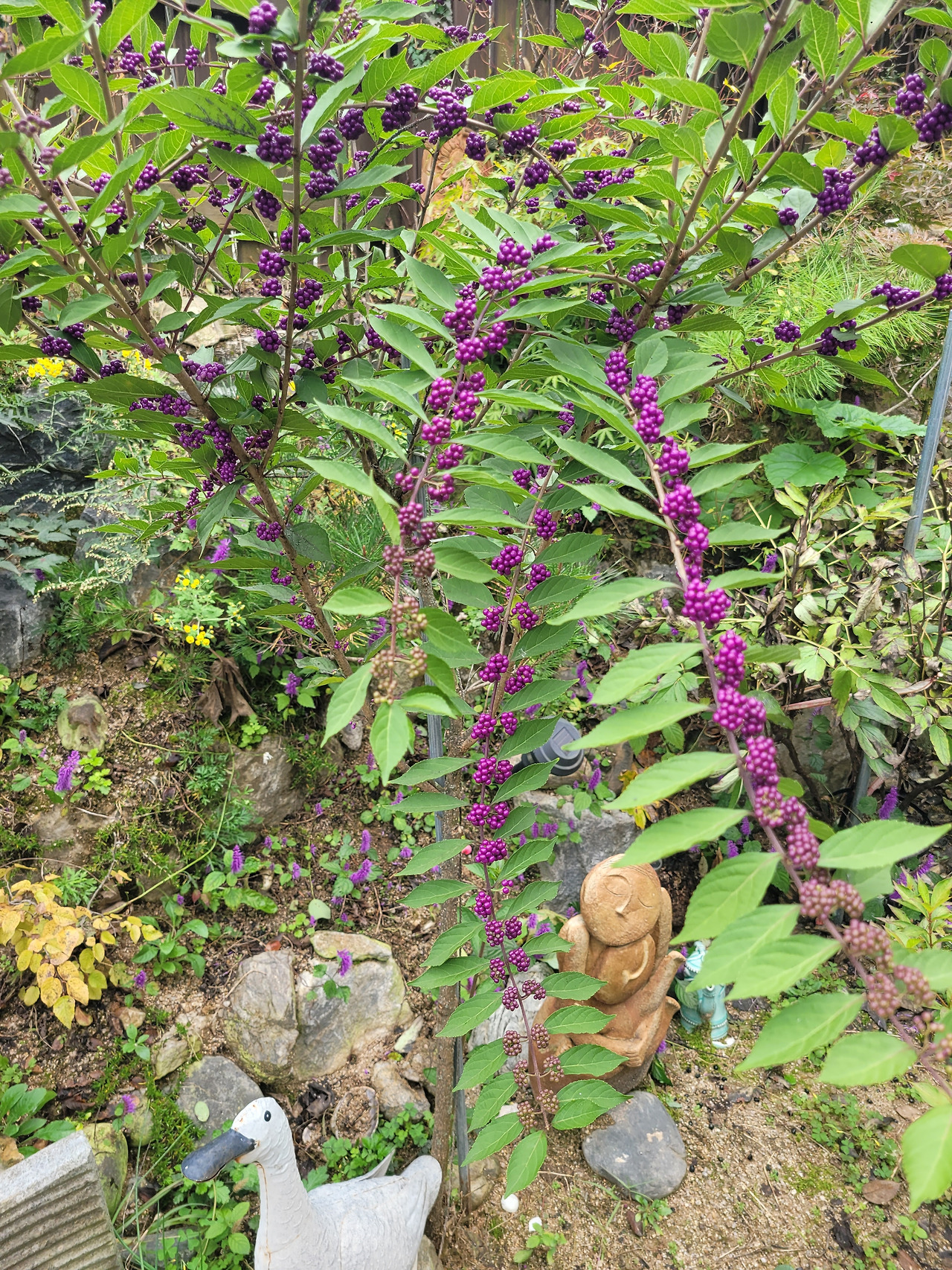 이름도 한번 제대로 불러주지 못한 좀작살나무의 보랏빛 고고한 열매는 가을이 왕족의 계절임을 알리기라도 하듯 한껏 우아한 빛을 품어내고 있다. 마치 이 보랏빛이 없었다면 얼마나 삭막했을 계절이었겠느냐를 자랑이라도 하듯... 발아래 꽃향유들도 질세라 보랏빛꽃들을 덧붙이고 있다.