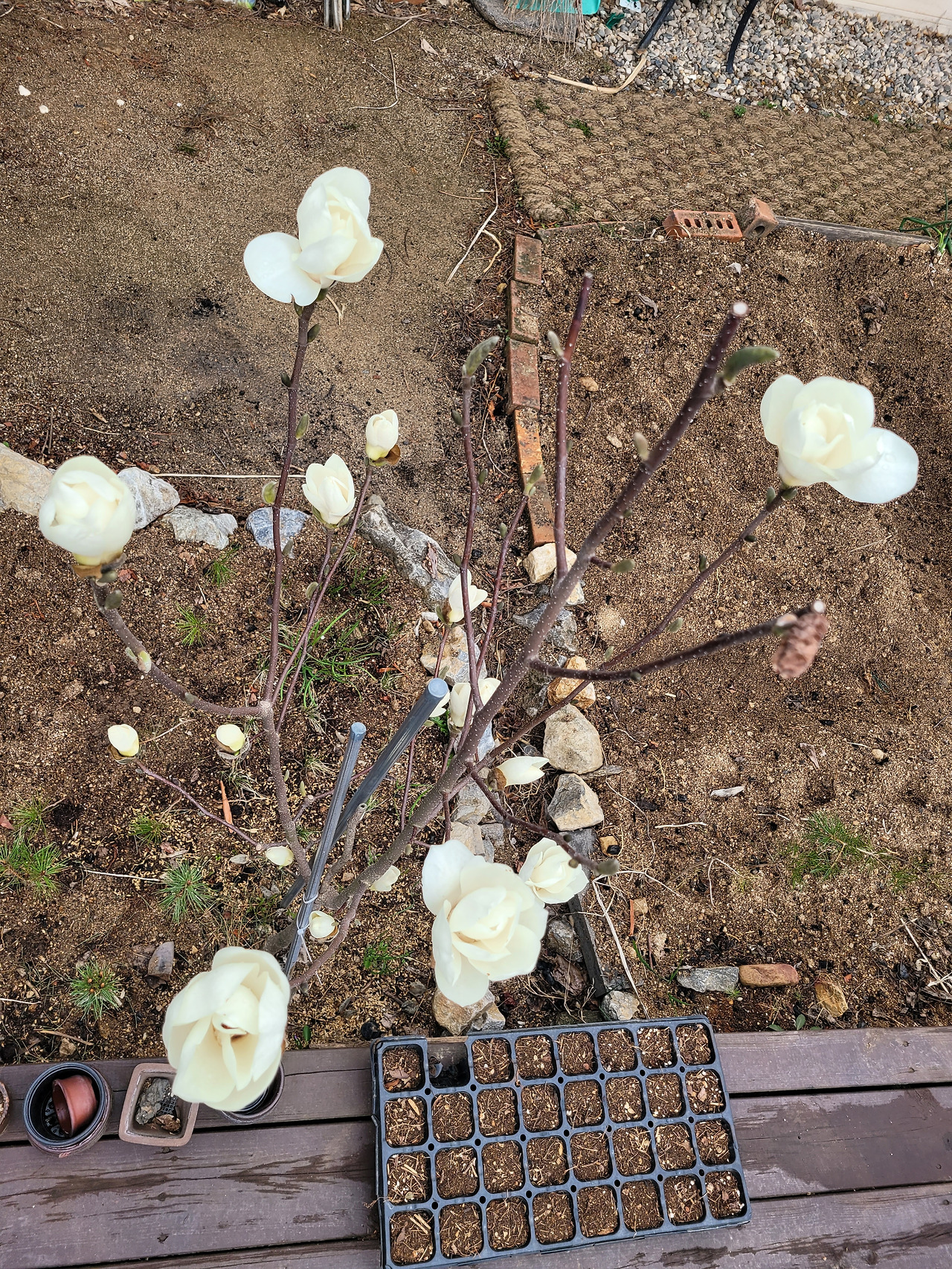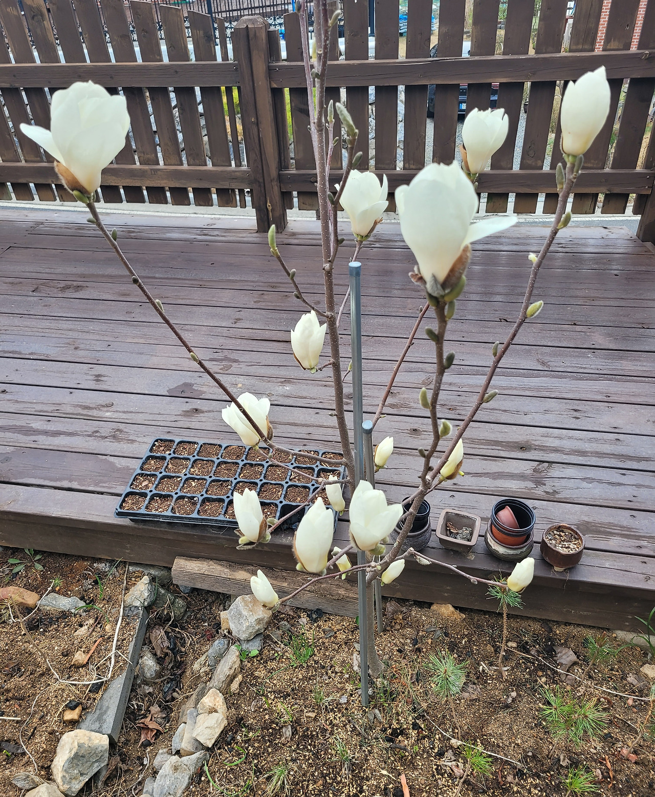 3년 전에 심었던 하얀 목련이 작년에는 두어 송이 피더니 올해는 여러 아이들이 저마다 아름다운 모습을 보여준다. 가까이서 목련꽃잎에 얼굴을 대고 향을 맡아본다.