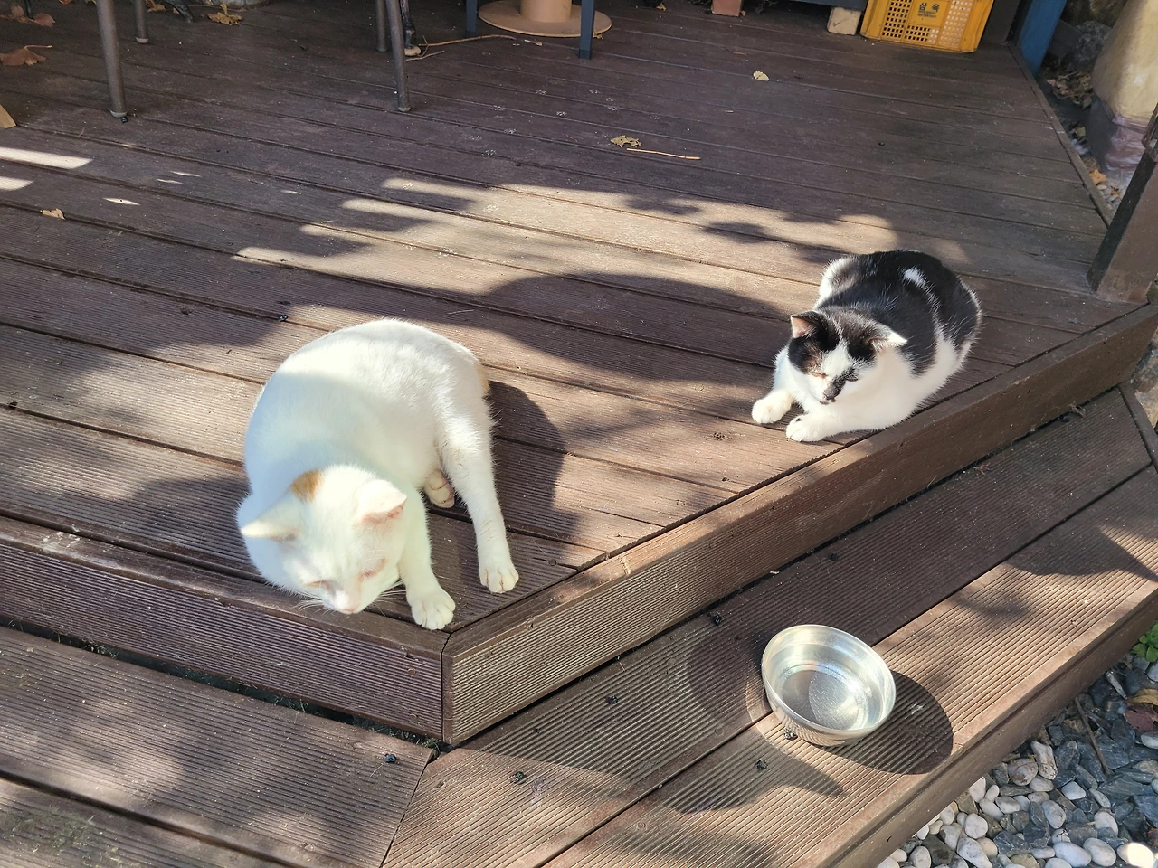 깜냥이는 어디서 새끼를 낳았는지도 모르고, 삼색이는 작년에 새끼 낳고 정원 냥이 하우스에서 키우다 떠난 것이다.