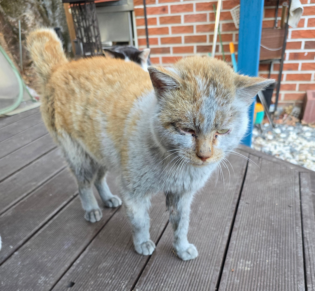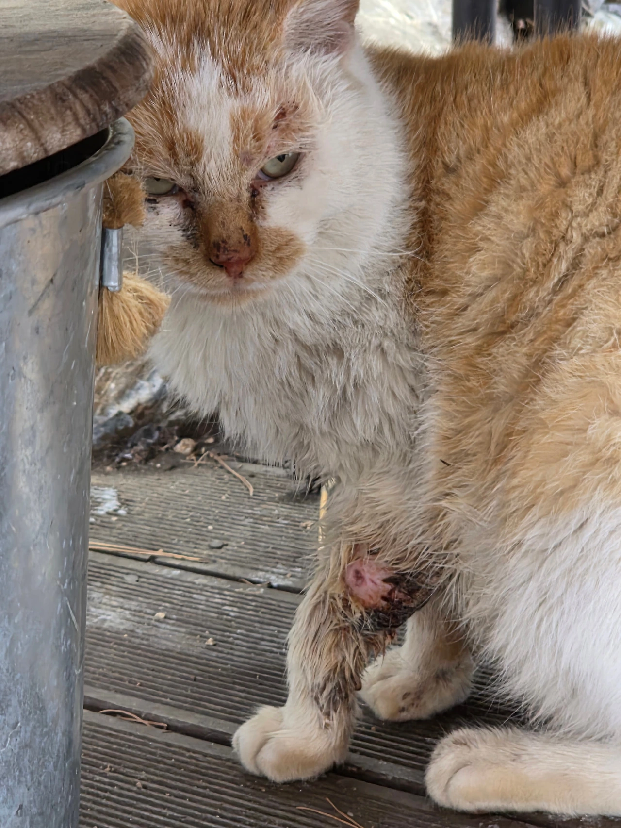 밥을 먹고 나서 제 집에 들어갔을 때 고기에 약을 비벼서 주니 잘 먹는다. 강아지들은 맛을 기막히게 알지만, 고양이들은 잘 모른다. 비린 생선맛만 아는 것 같아 사흘 약을 먹이고 연고를 발라주니 다행히도 많이 좋아진 것 같다. 절뚝거리는 것도 덜하고 상처도 딱지가 생기고 아물어 갔다. 며칠이면 완전히 나을 것 같았다.