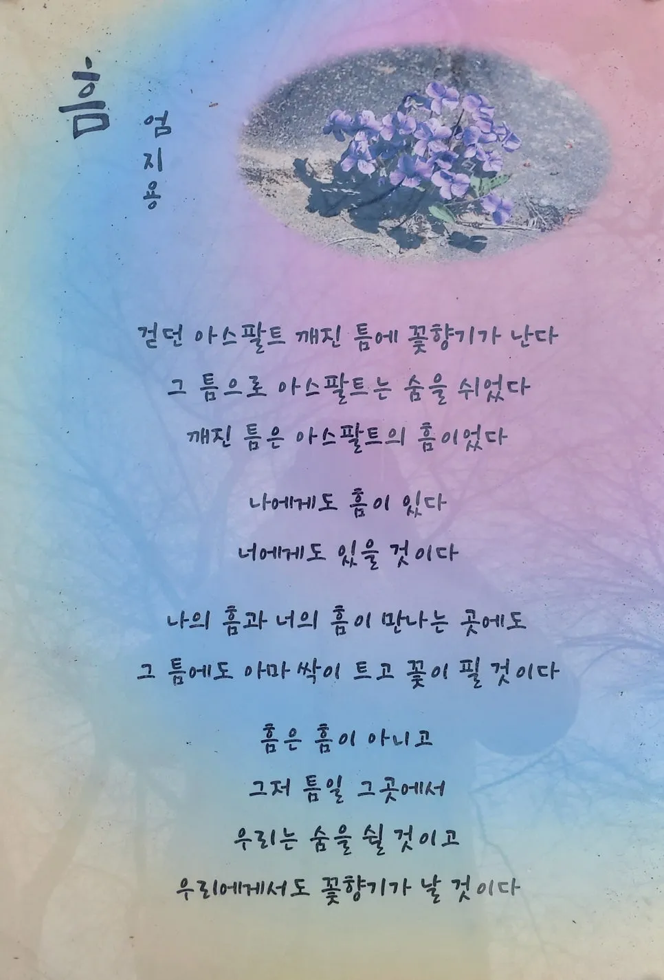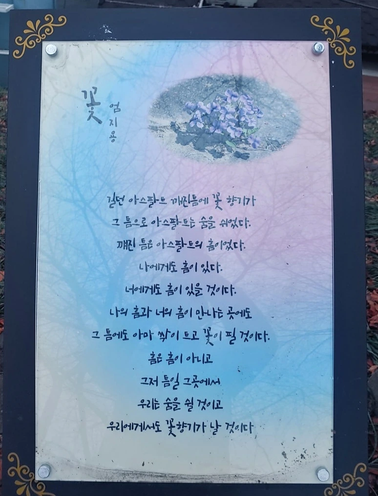 구청 온라인 민원게시판에 올렸더니 일주일 안에 고쳐놓겠다고 답변이 올라왔다. 왠지 좋은 시 하나 살린 기분이었다.