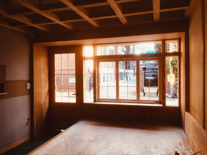 다다미가 깔릴 날을 기다리며 오후햇살에 몸을 뉘인다.