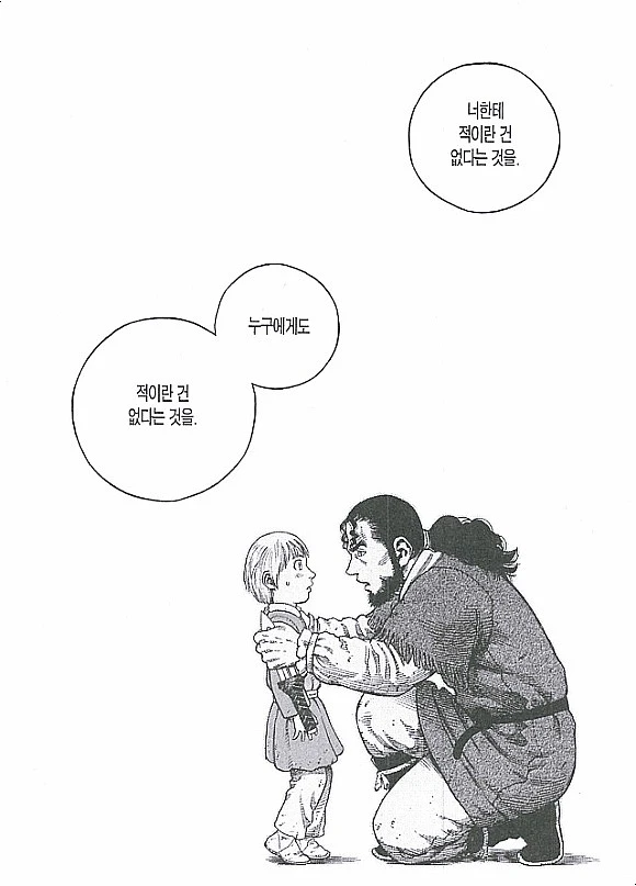 이러한 주제의식을 작품 전체에서 관통하고 있는 『빈란드 사가』라는 만화가 있습니다. 적이 있다고 착각하는 아이에게 그의 아버지가 이러한 메시지를 전합니다.