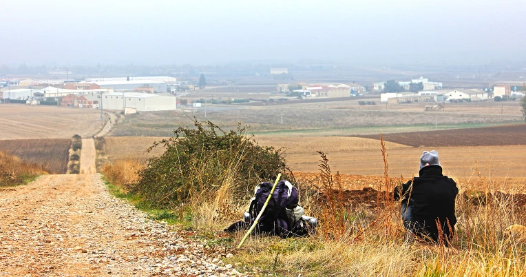 싼토도밍고를 얼마 남겨두지 않고 사무엘이 길 옆에 앉아있었다.