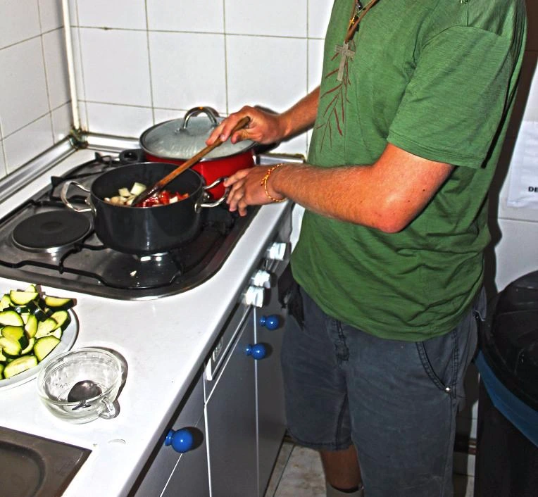 사무엘이 가지와 애호박, 양파 등으로 덮밥소스를 만들었다.