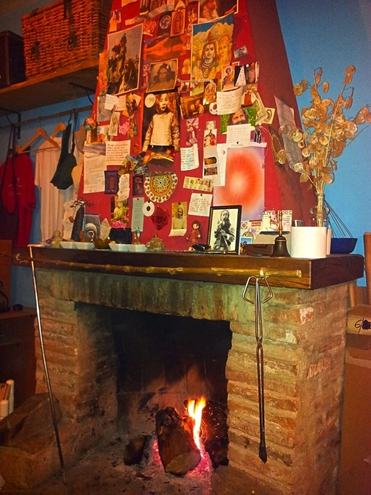 벽난로 주위의 사진들로 보아 주인은 불교와 명상에 심취한 듯하다.