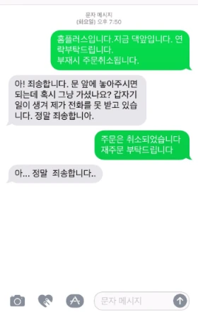 그런데 가끔 주문을 해놓고 고객이 부재중인 경우가 있다.