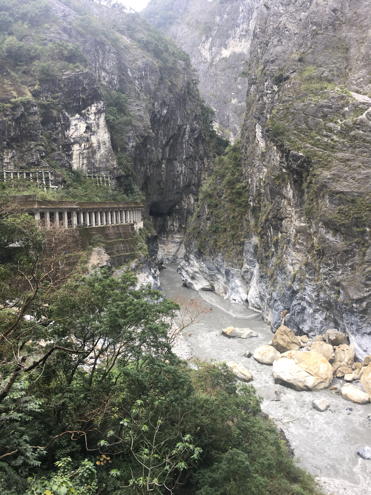 화련은 타이베이에서 기차를 타고 2시간 넘게 가야하는 곳이다. 대만 지도를 보면 동쪽으로 향하는데 바다도 있고 산도 있고. 경포대와 설악산 가는 기분이랄까? 어쨌든 예스진지가 사람들이 만들어낸 인공적 문화유산이라면 타이루거는 자연이 만들어낸 유산. 석회암, 대리석이 가득한 기암괴석이 이국적인 풍경을 느끼게 하는데 제격이었다.