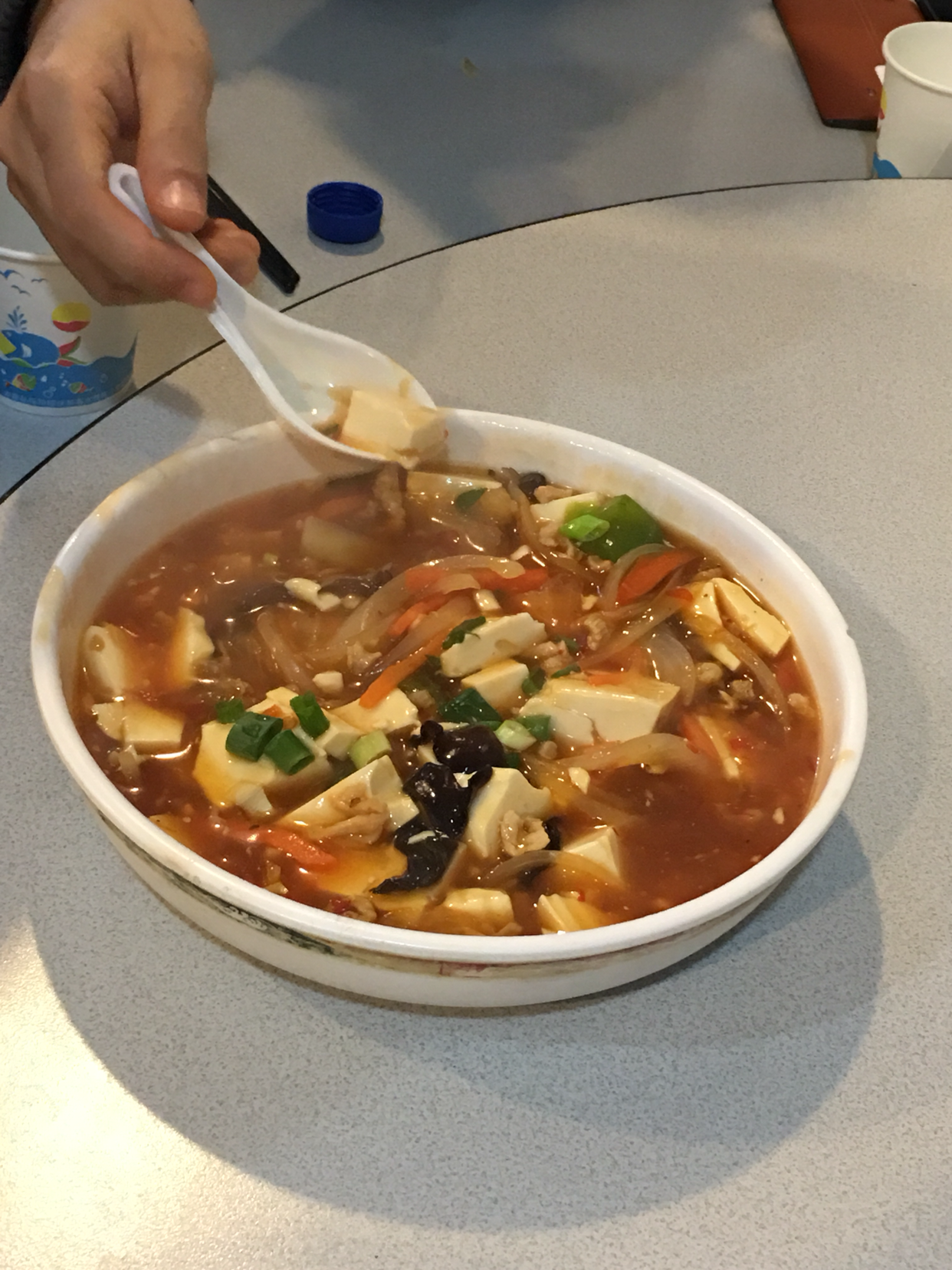 타이루거에서 점심으로 먹었던 메뉴. 천상(티엔샹)이라는 곳에는 음식점이 몇 개 없어서 선택의 여지가 없다. 다행히 한국메뉴판이 있었지만 그렇다고 해서 새로운 음식을 먹는 게 익숙할리가 없다. 노란색으로 나눠 준 것에서 별로 실패 할 수 없는 새우볶음밥과 돼지고기볶음밥(?)을 시켰다. 그리고 마파두부. 보통 마파두부는 덮밥처럼 먹는다고 생각했는데 여기는 약간 찌개처럼 나오더라. 그런데 그 맛이 된장찌개 같아서 매우 만족했다. 칼칼하고 구수하고 국물 맛이 끝내주는! 입 짧은 아내가 보증했으니 분명 한국인의 입맛이다!