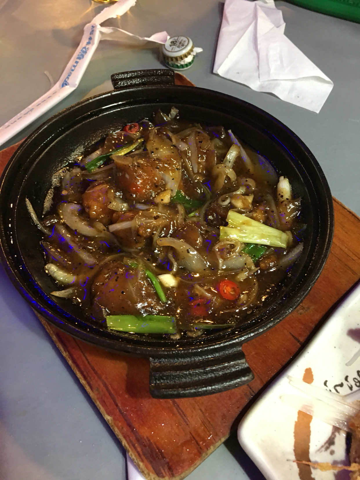 스펀에서 먹은 간식이다. 일단 닭날개볶음밥은 이마트에서 파는 것을 한 번 먹어봤던 지라 큰 기대는 안 했다. 그런데 완전 다른 맛이더라. 숯불에 구워 주는데 그 향이며 안에 들은 볶음밥의 맛이며 정말 좋았다. 다 먹고나서 끝에 남는 날개의 꼬다리는 나를 졸졸 따라다니는 개한테 서비스. (그나저나 여기 개들은 왜 이리 흑구들이 많은지. 풀어 놓고 키우는게 문화라니 딱히 할 말은 없지만 무섭고 불안하기는 하다.) 참. 요놈은 스펀 기차역 바로 옆에서 파는게 원조라고 하더라. 그 다음은 오징어튀김. 커다란 오징어를 잘게 잘라서 주는데 오동통한게 맛나다. 매운 맛을 고르면 무슨 가루를 뿌려 주는데 그게 더 맛나다는 사람도 있고. 난 그 가루가 딱히. (고추가루 같지는 않아서..)